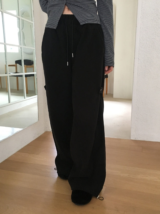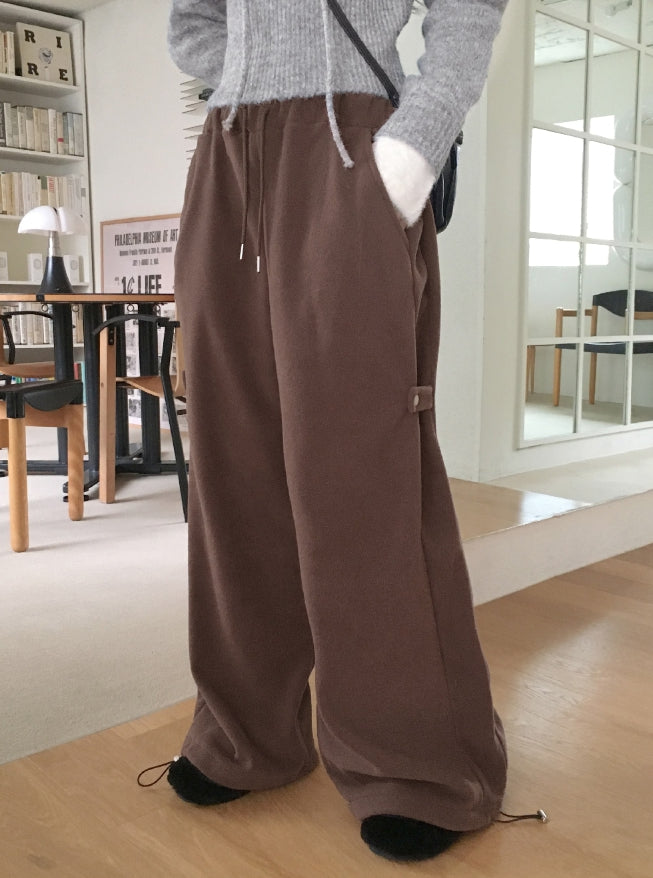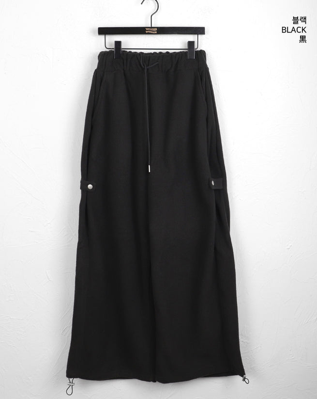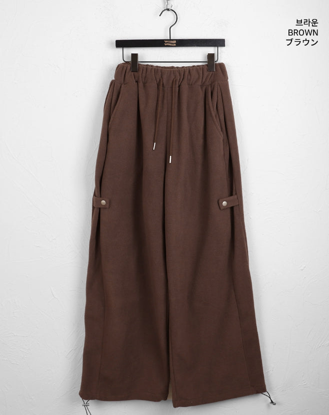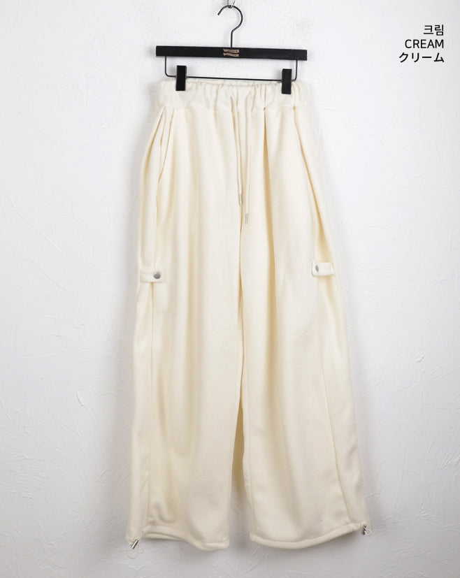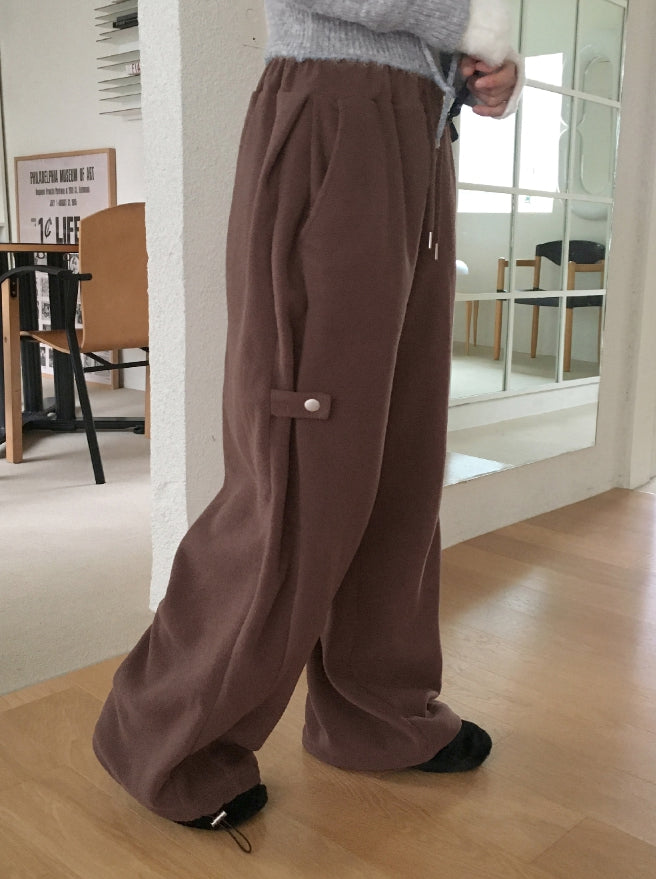 Mada Fleece Side Pintuck Snap Button Two-Way Banding Long Wide Jogger Pants