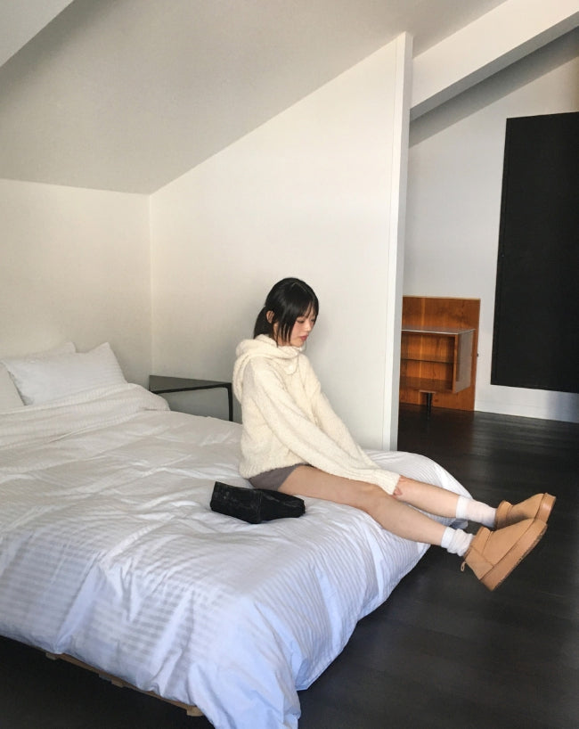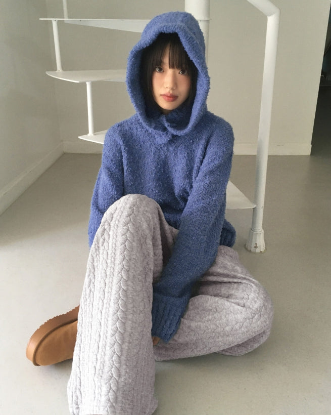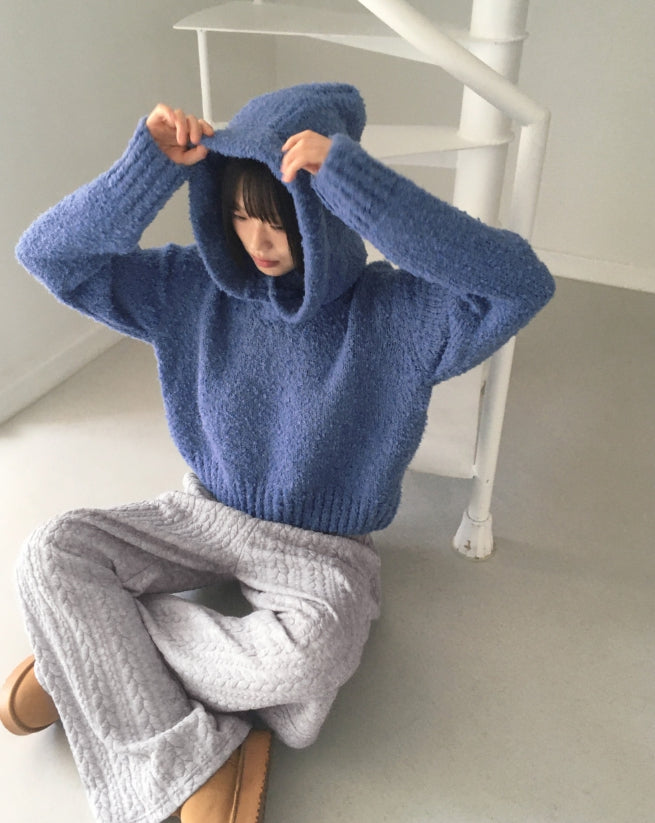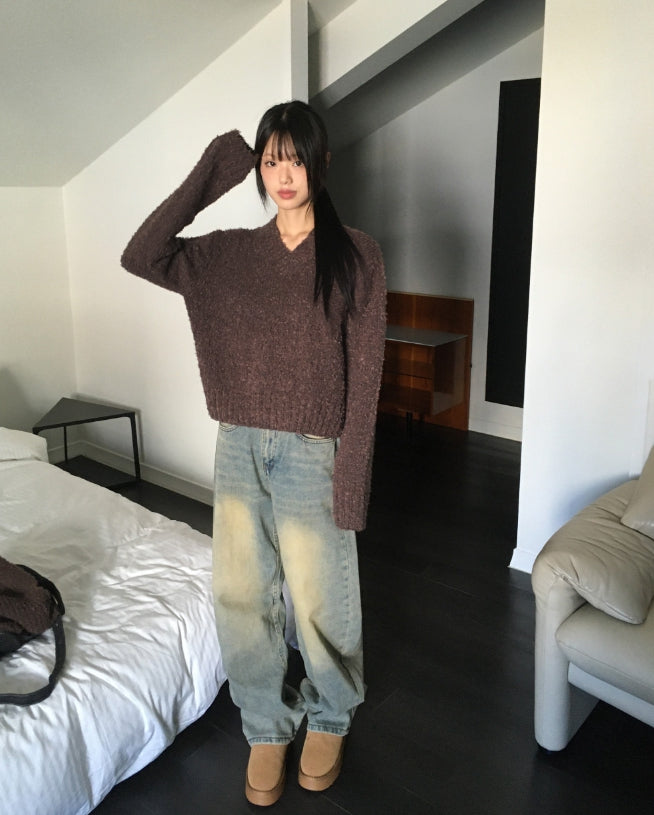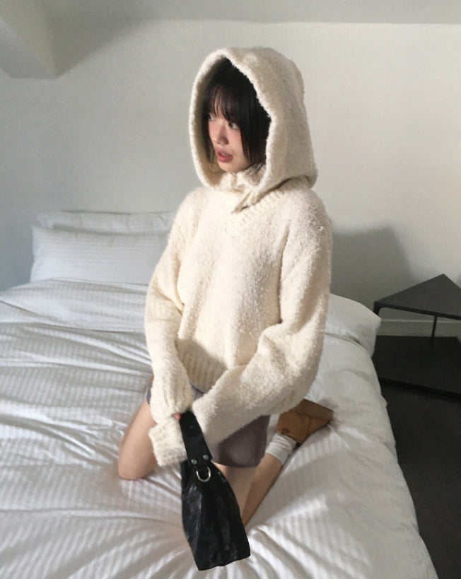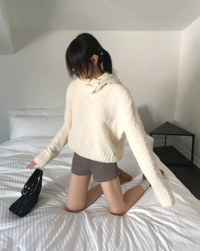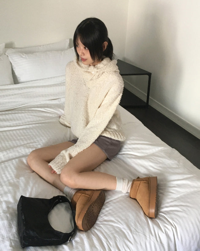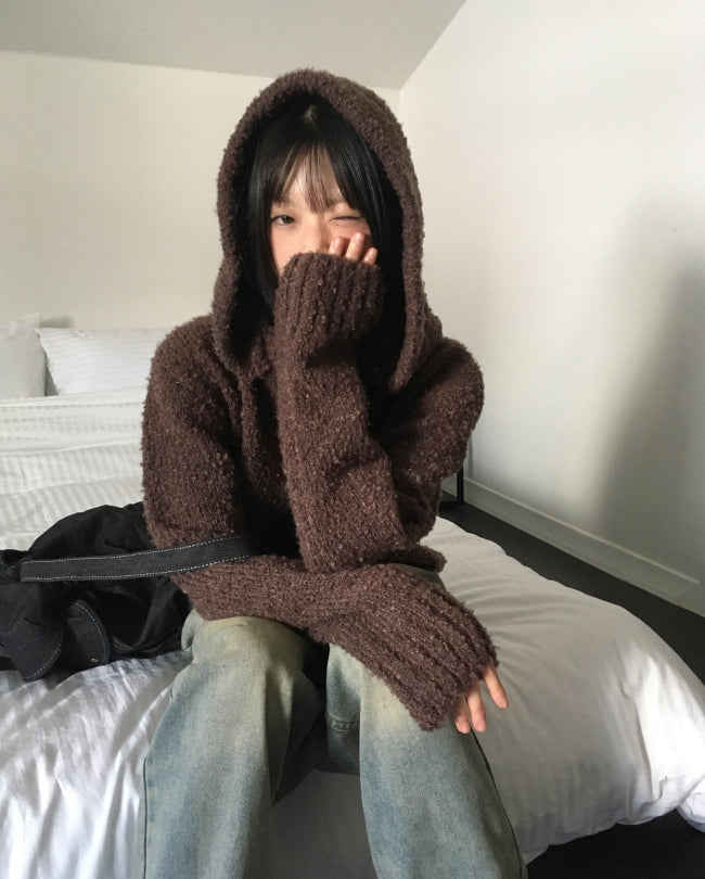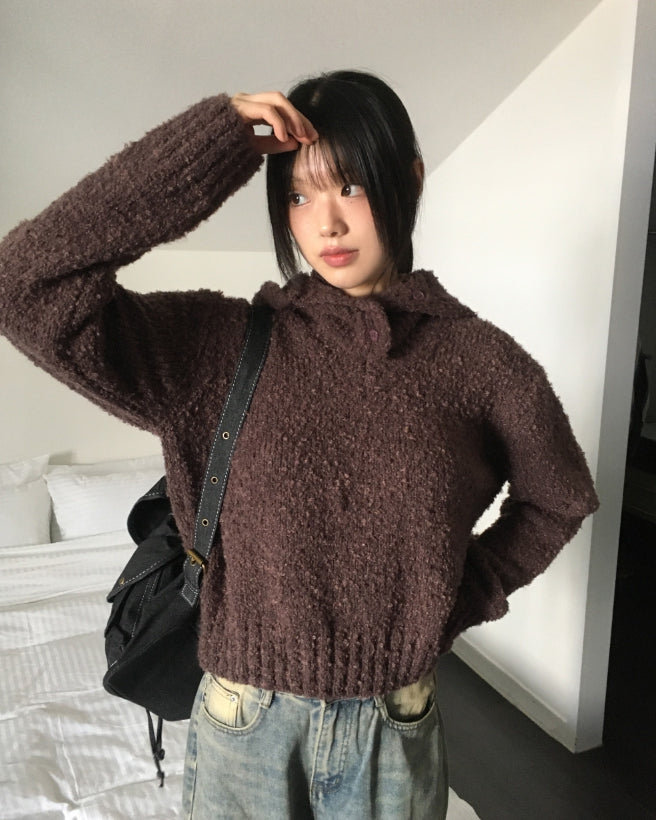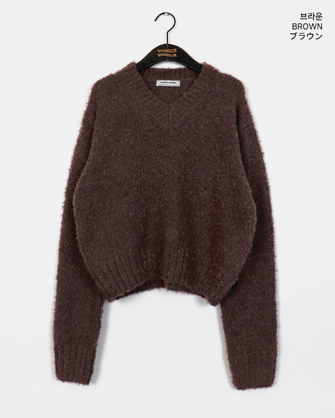 [MADE] Afong Balaclava Boucle V-neck Crop Knit Set