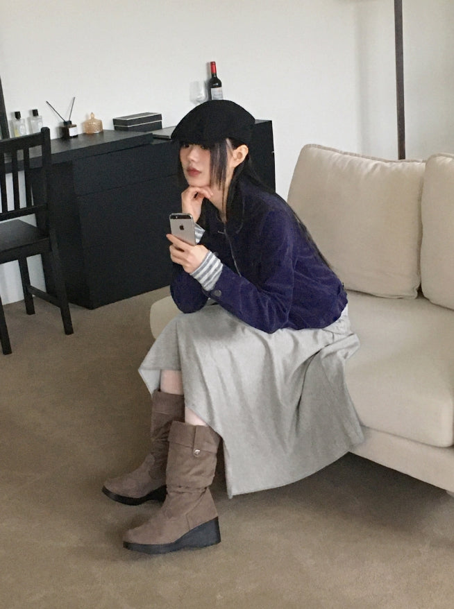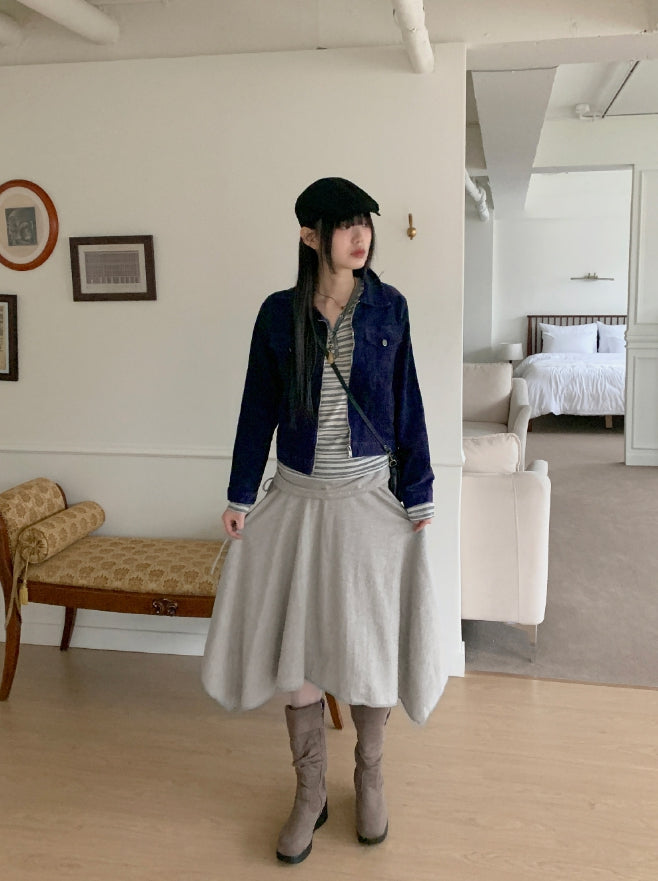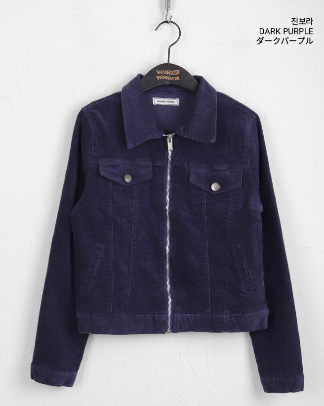 [MADE] Colte Slim Pocket Collar Cropped Corduroy Zip-Up Jacket