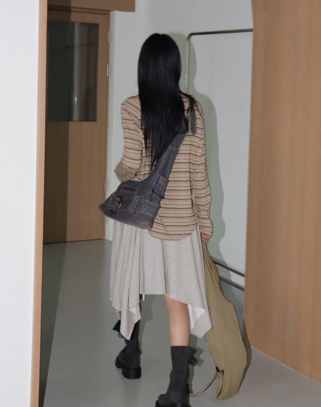 [MADE] Dilly Pile Color Matching Unbal A-line Layered Midi Skirt