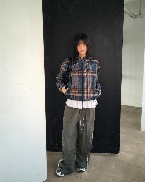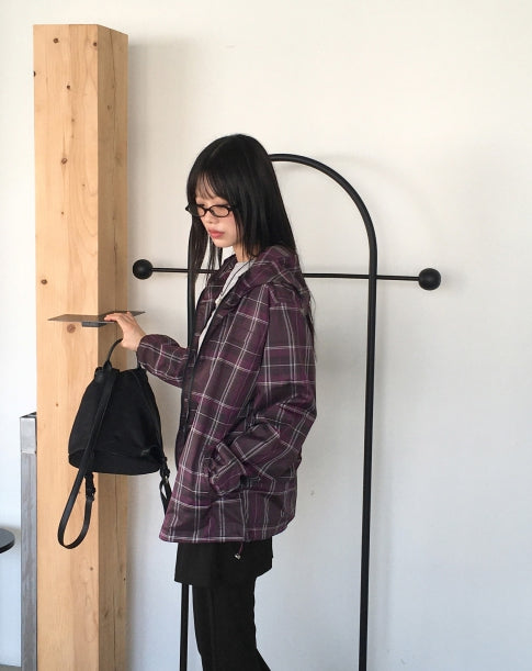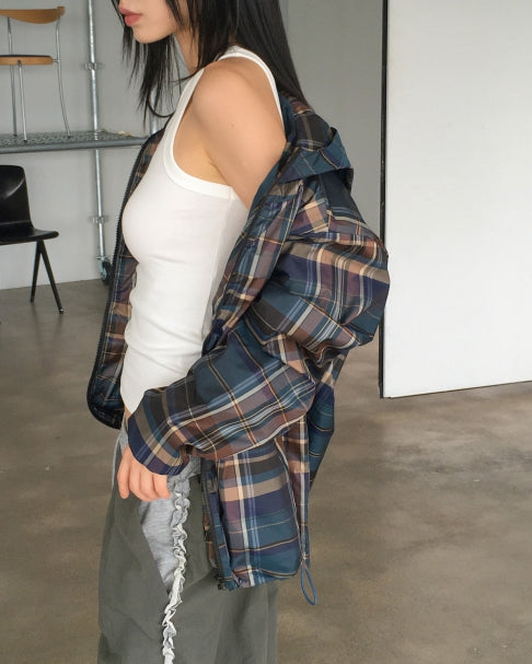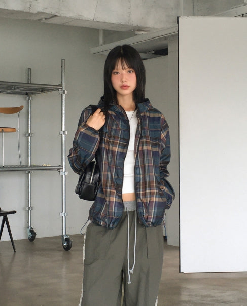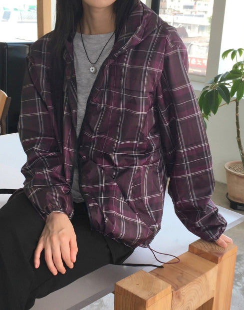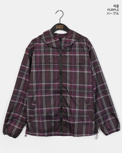 [MADE] Dorman Checkered Windbreaker Nylon Hooded Zip-Up