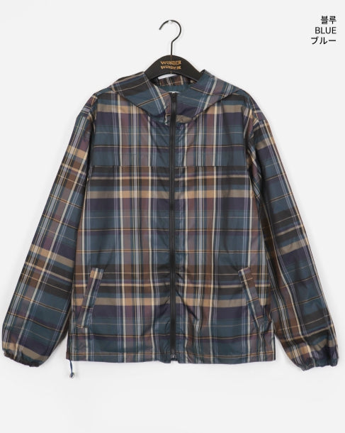 ドマンチェックウィンドブレーカーナイロンパーカージップアップ