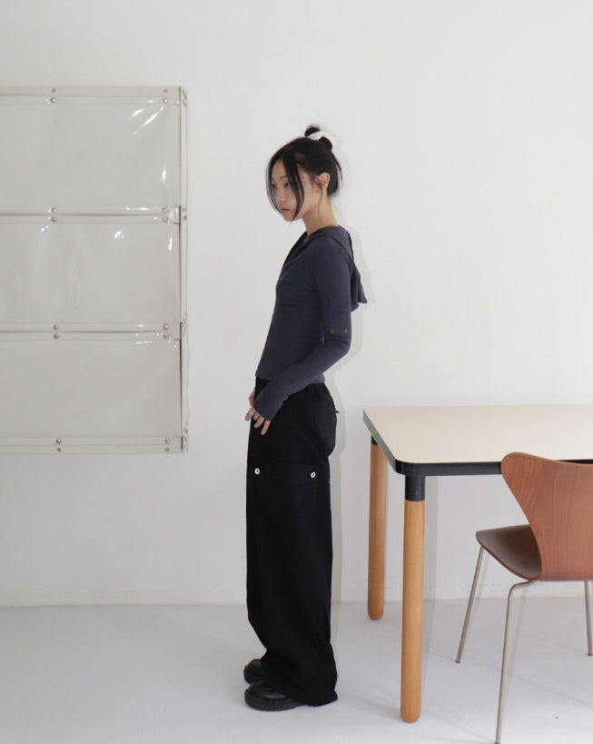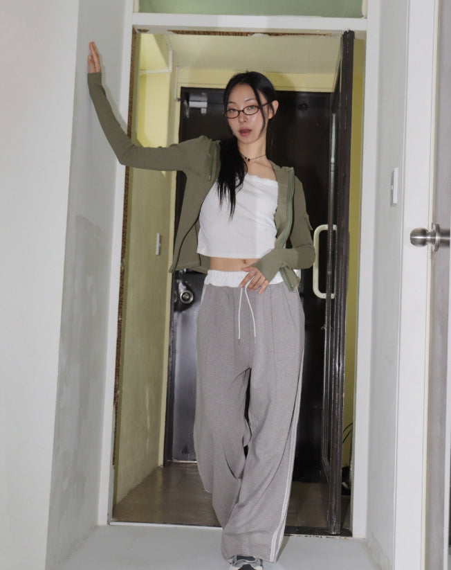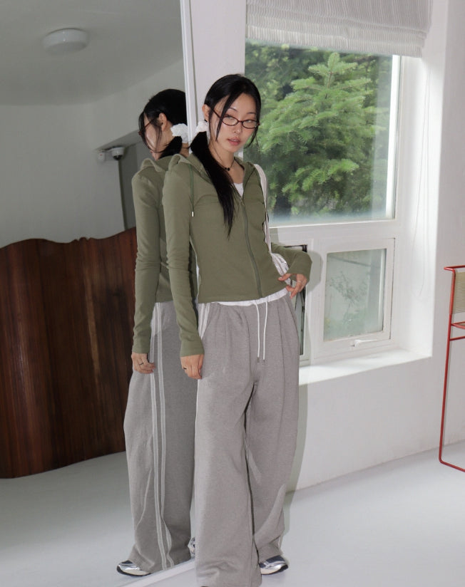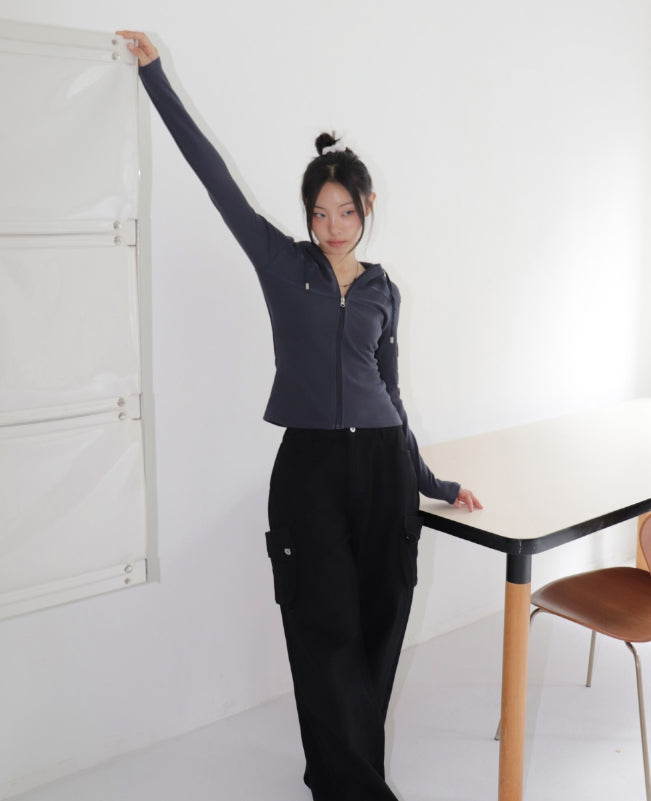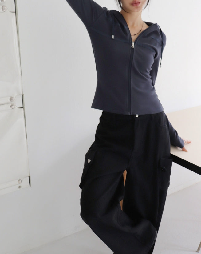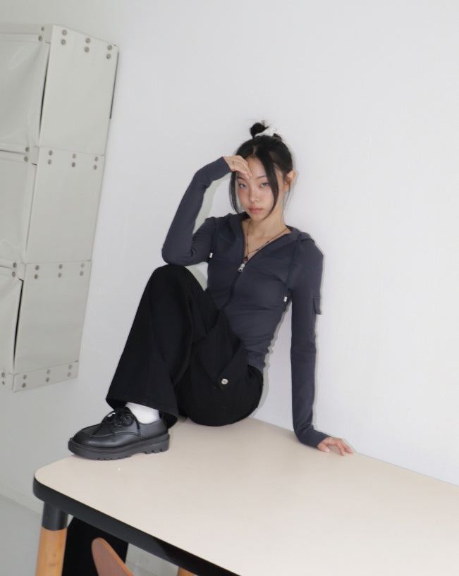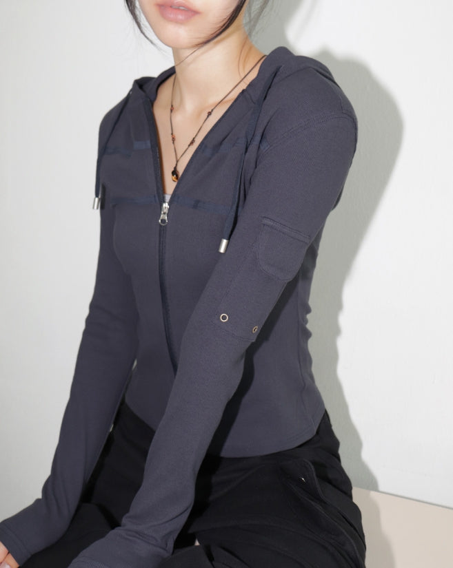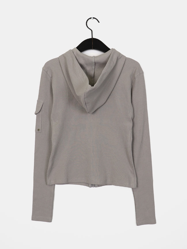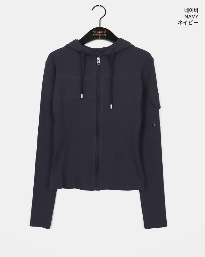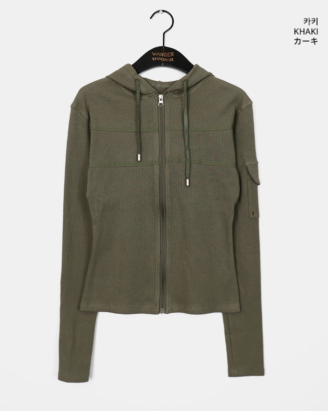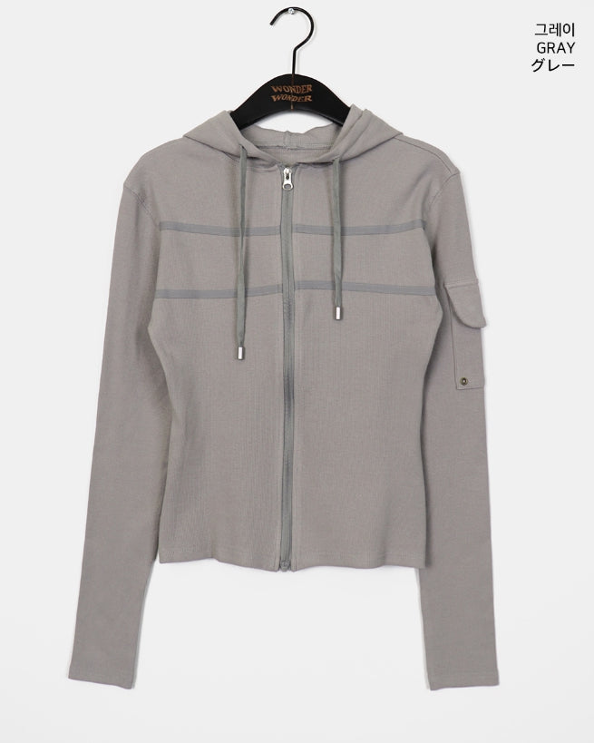 [MADE] Foil Vintage Pocket Slit Slim Ribbed Hood Zip-Up