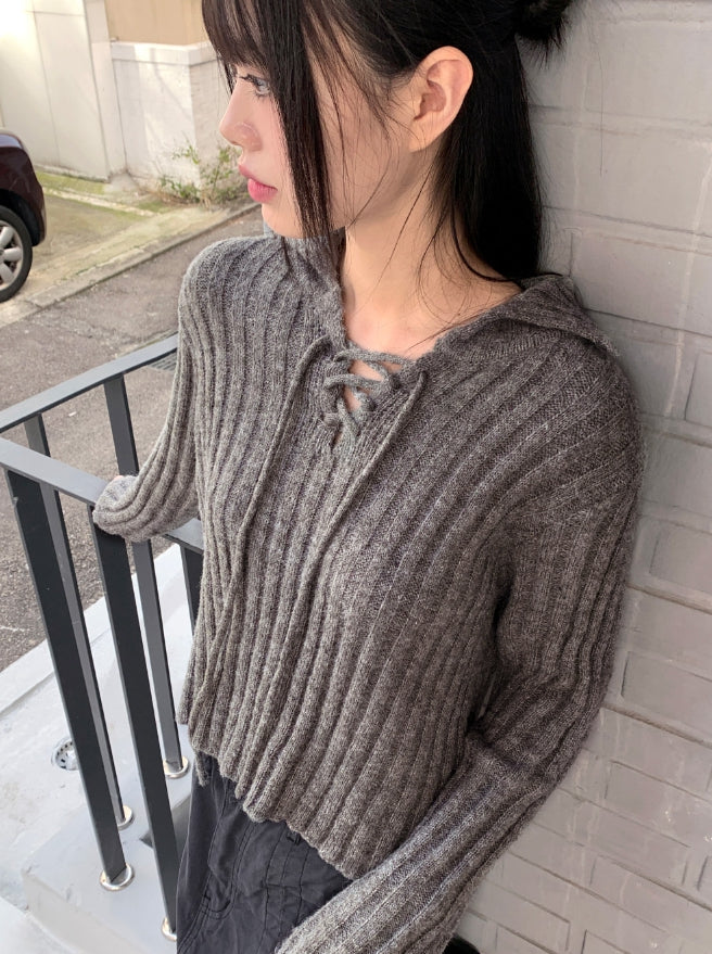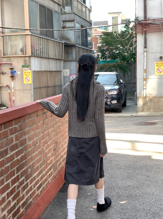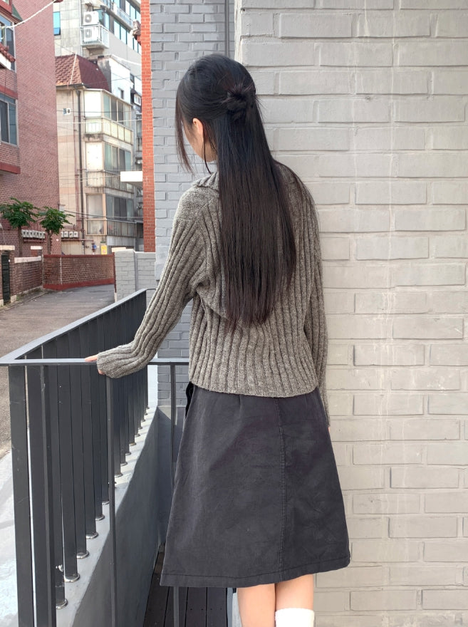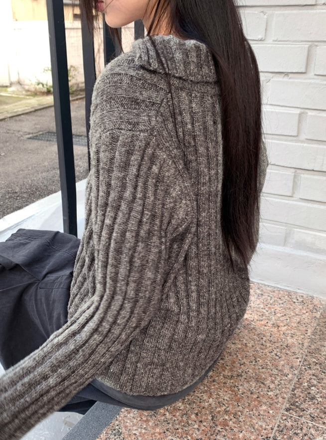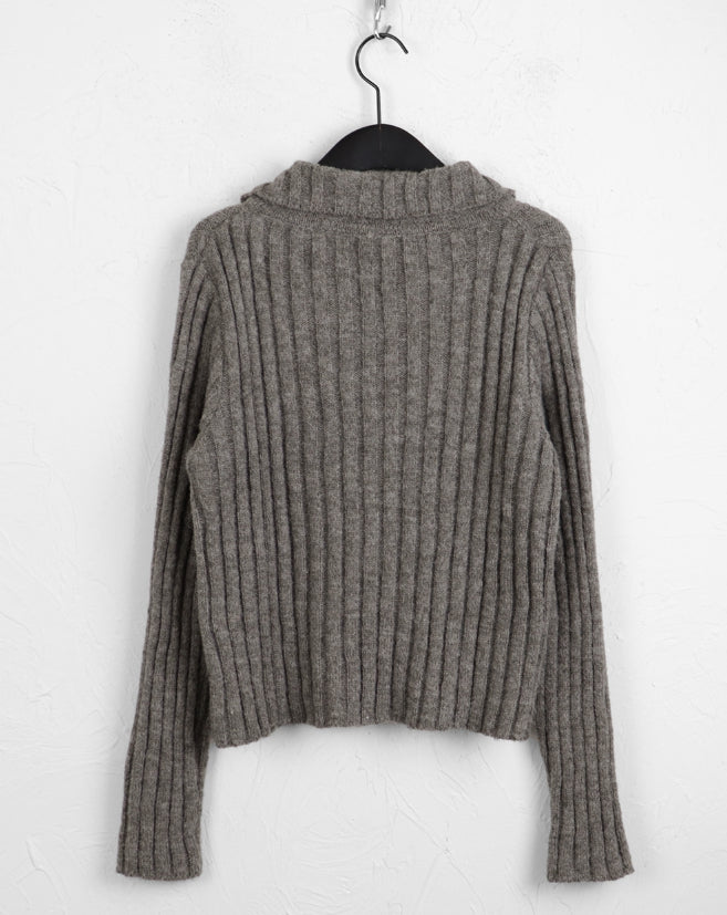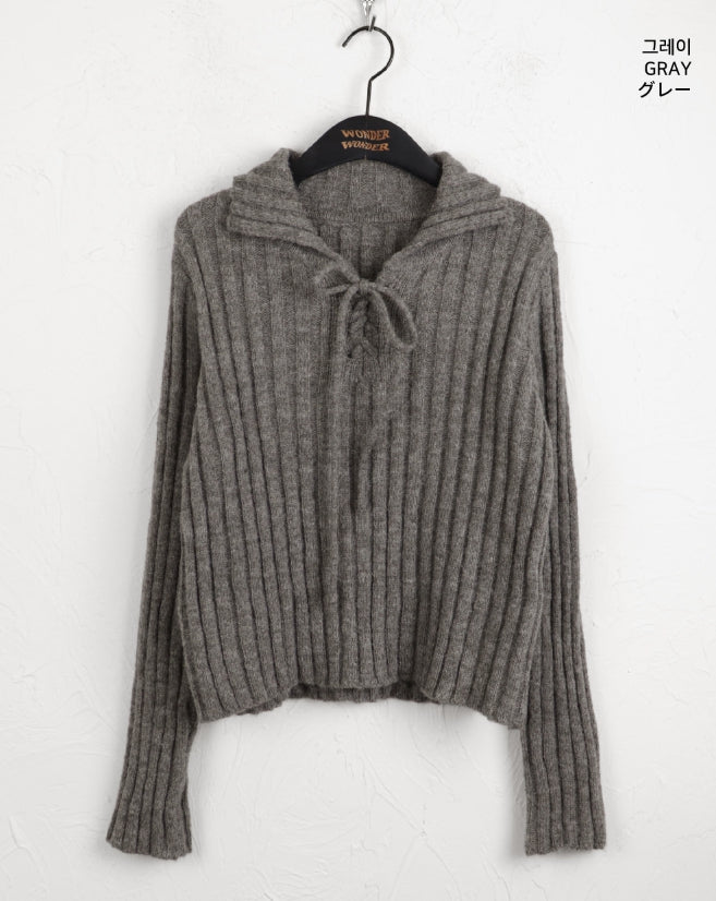 [MADE] Foundy Wool Ribbon Strap Collar Ribbed Long Sleeve Knit