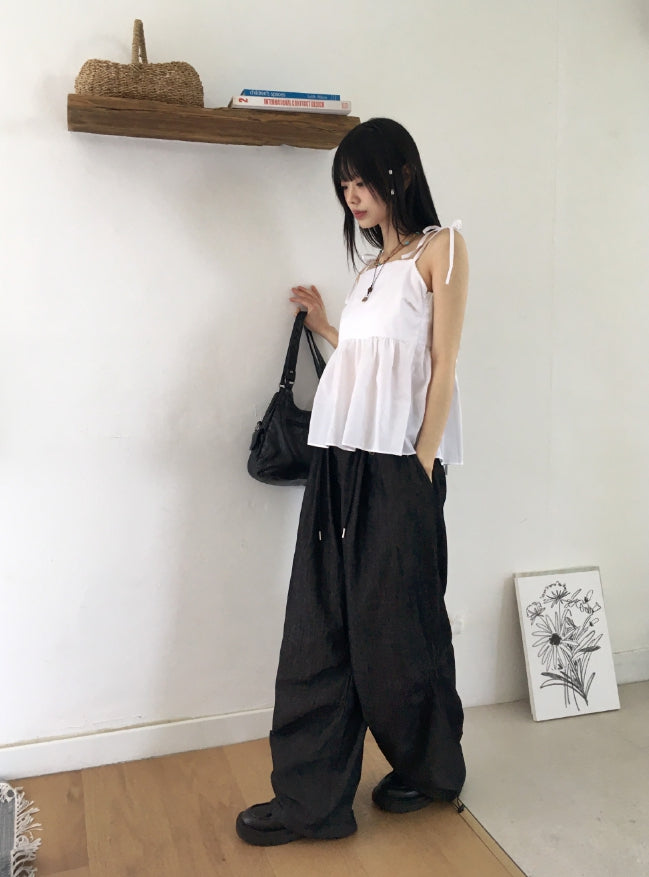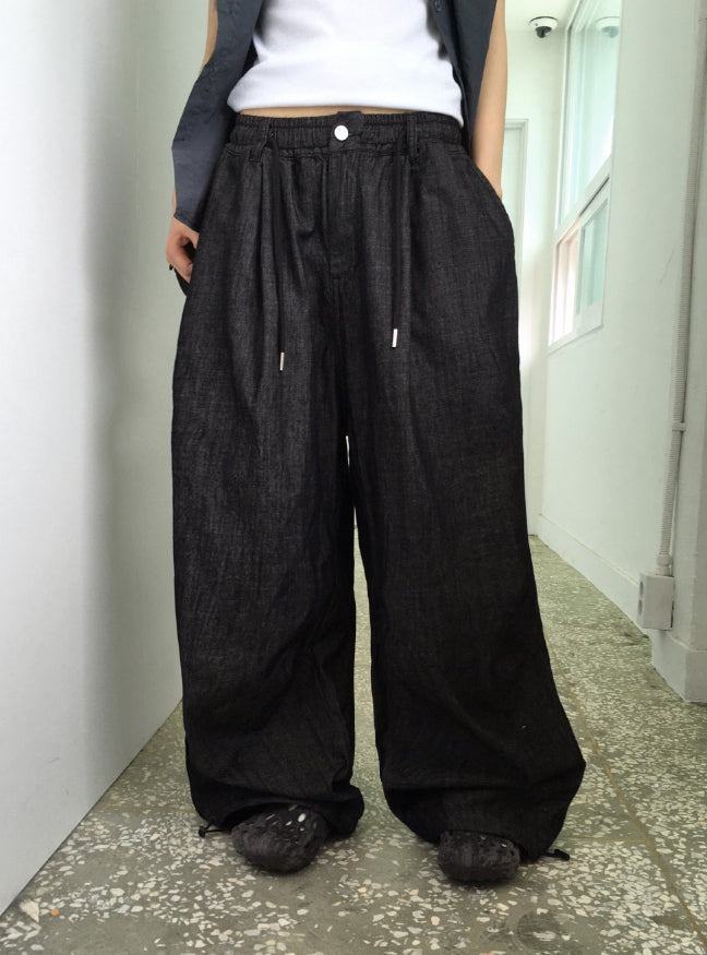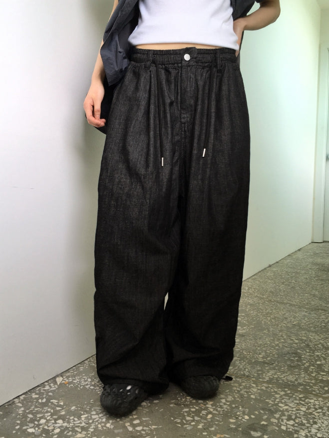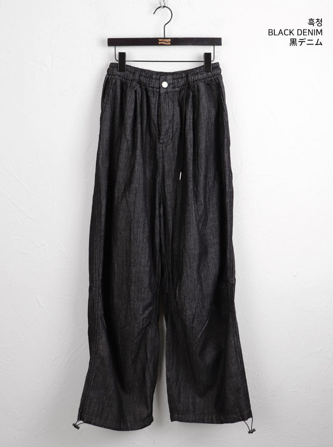 [MADE] Kinto String Two-Way Linen Denim Long Wide Jogger Pants