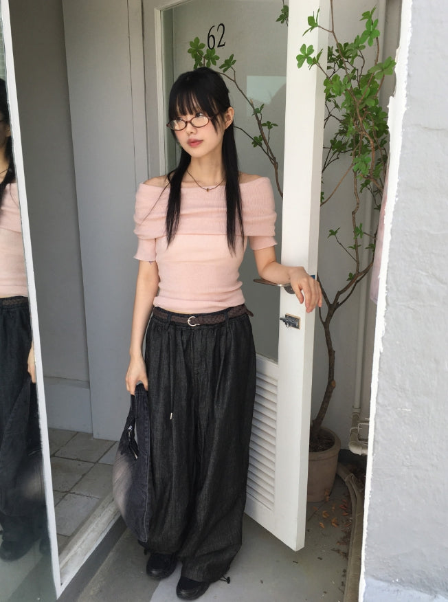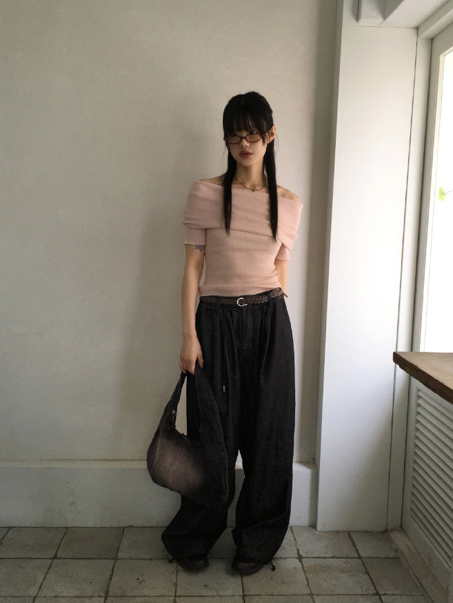 [MADE]キントストリングツーウェイリネンデニムロングワイドジョガーパンツ