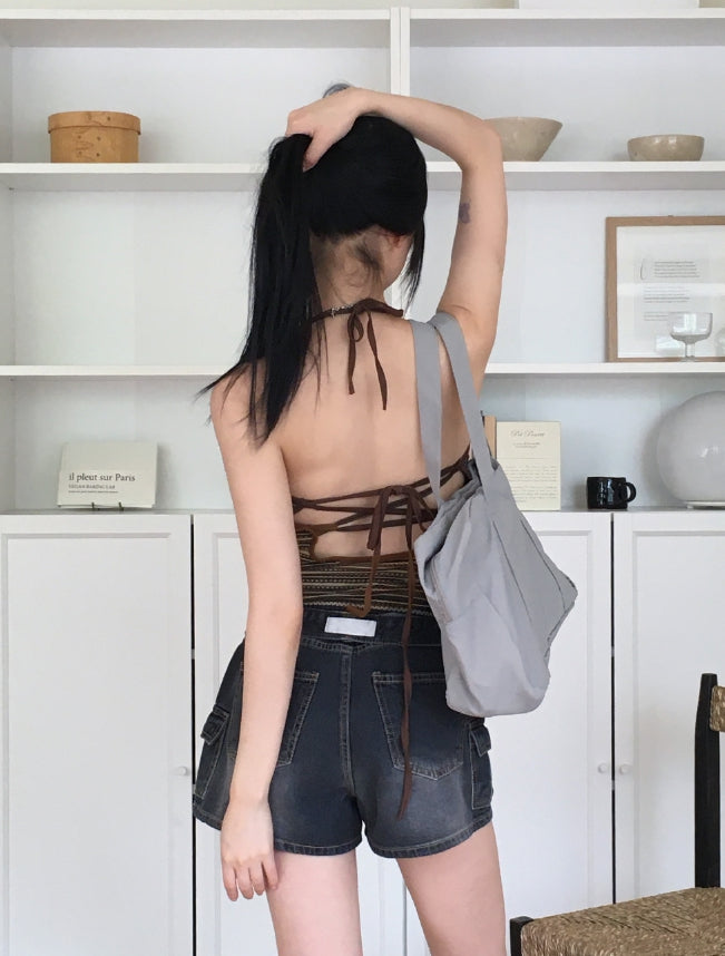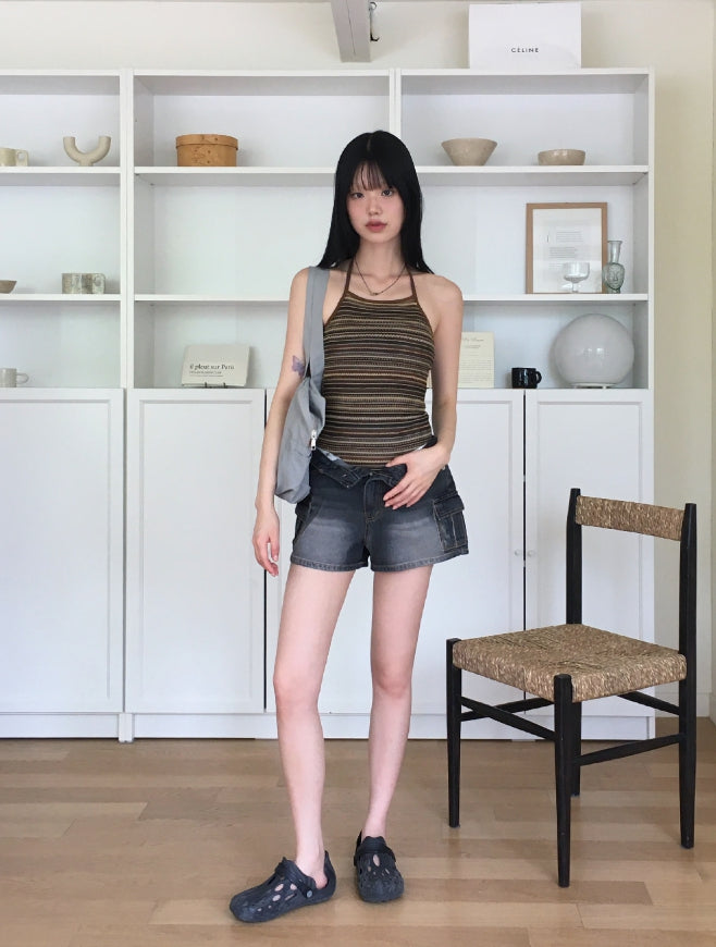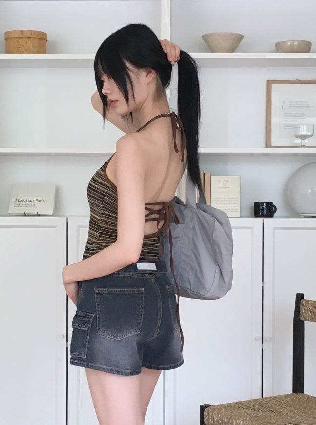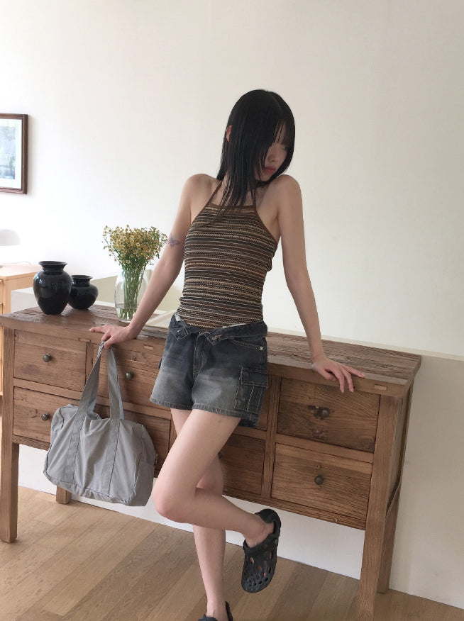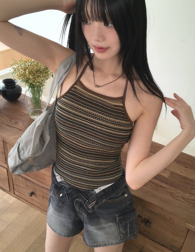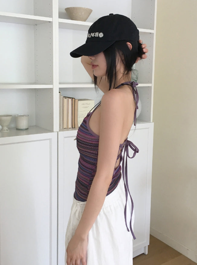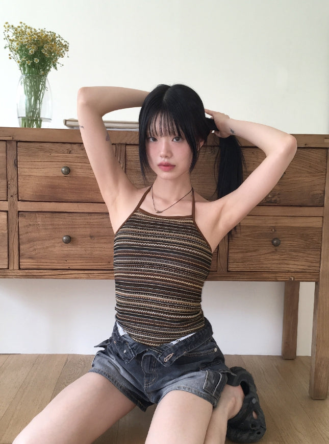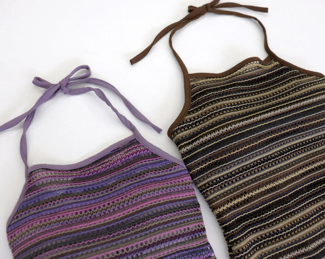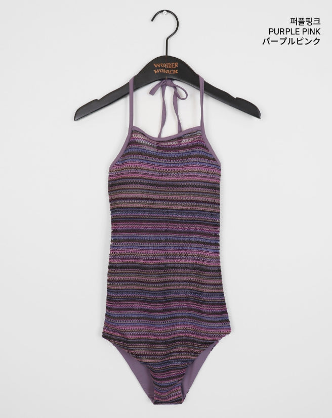 [MADE] Muka hippie stripe net halter neck monokini swimsuit