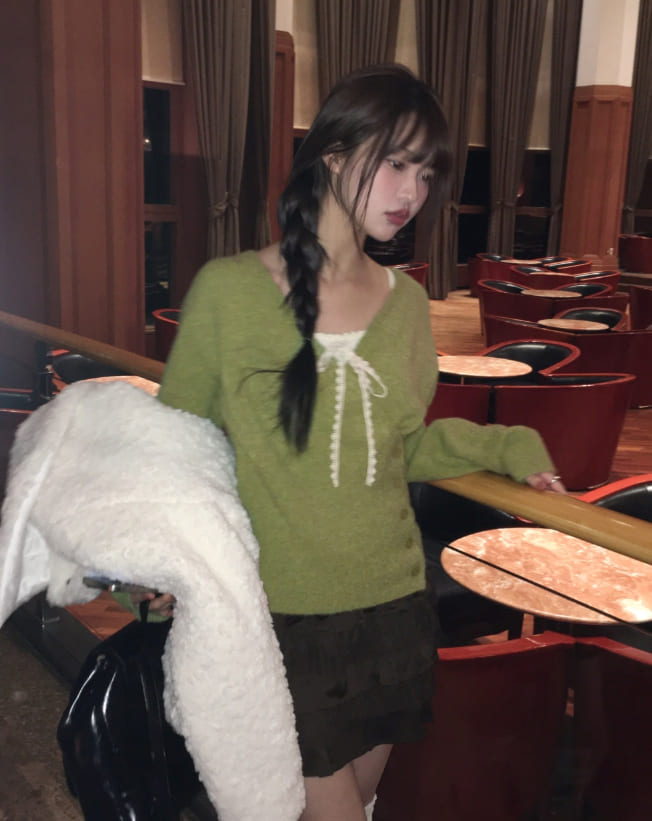 [MADE] Nuon Wrap Button Wool V-Neck Knit