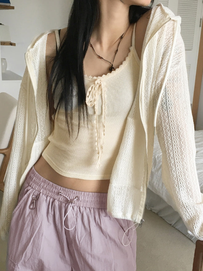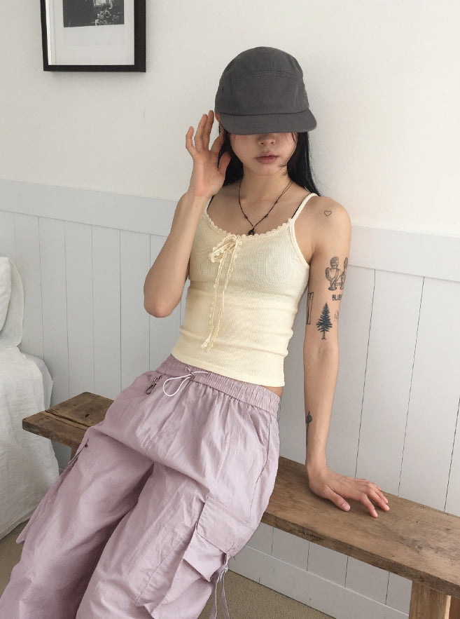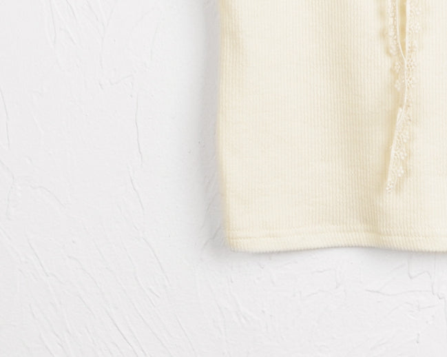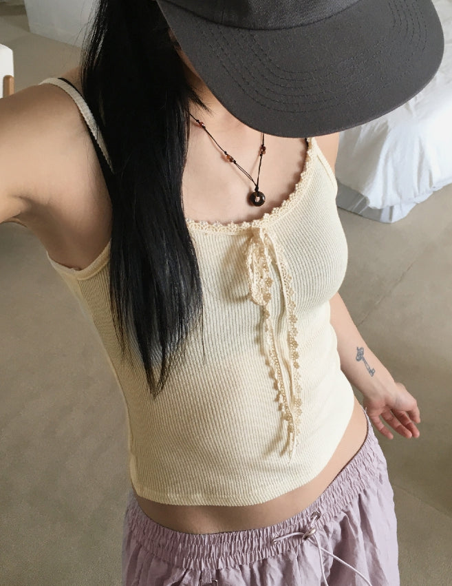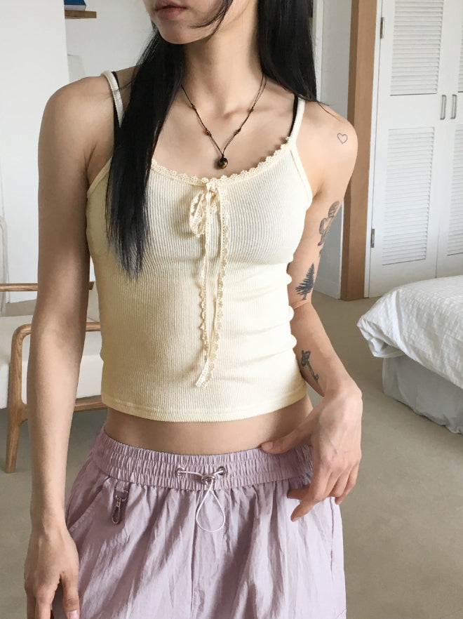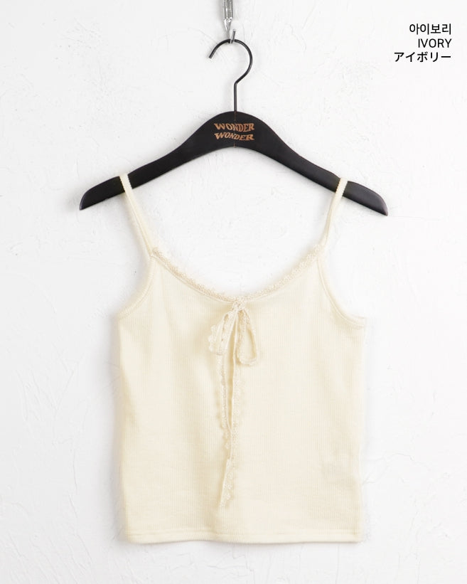 [MADE]クィニービンテージレースリボンリブクロップキャミソール