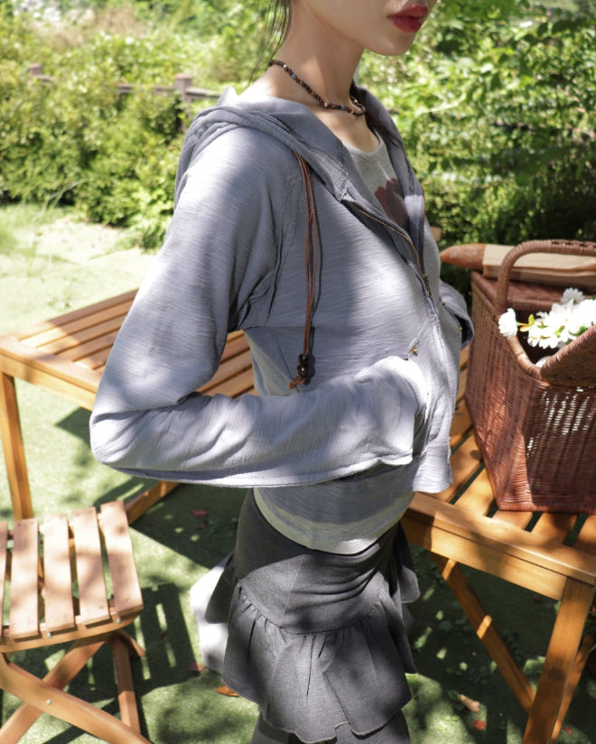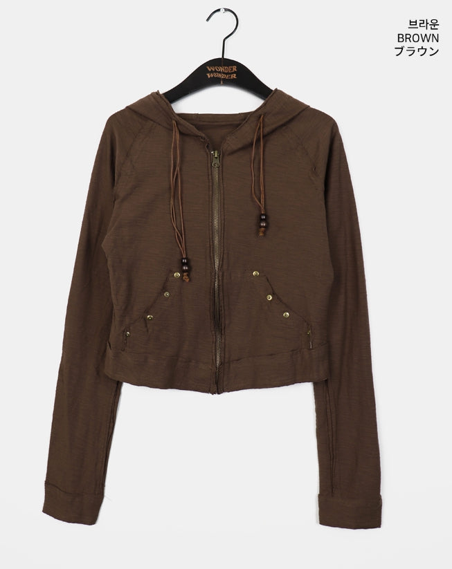 [MADE] Tutty Vintage Wood Slab Cropped Hood Zip-Up