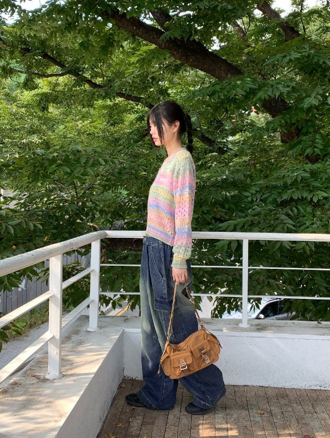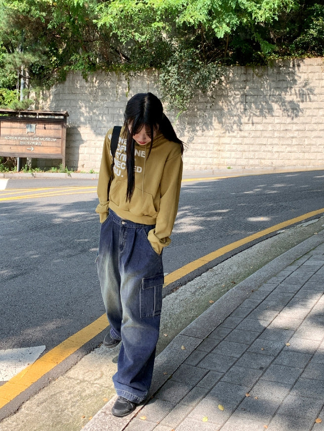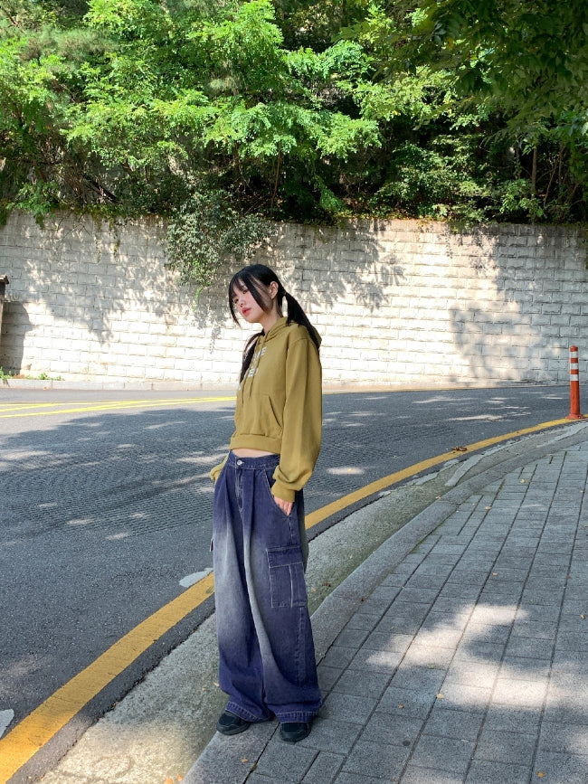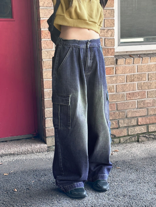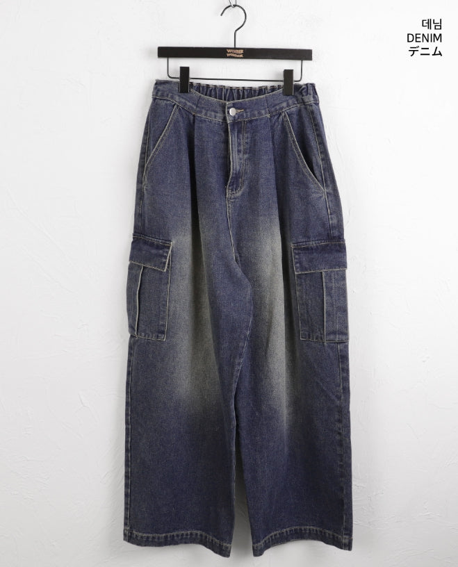 [MADE] Uko Pintuck Cargo Back Banding Long Wide Denim Pants