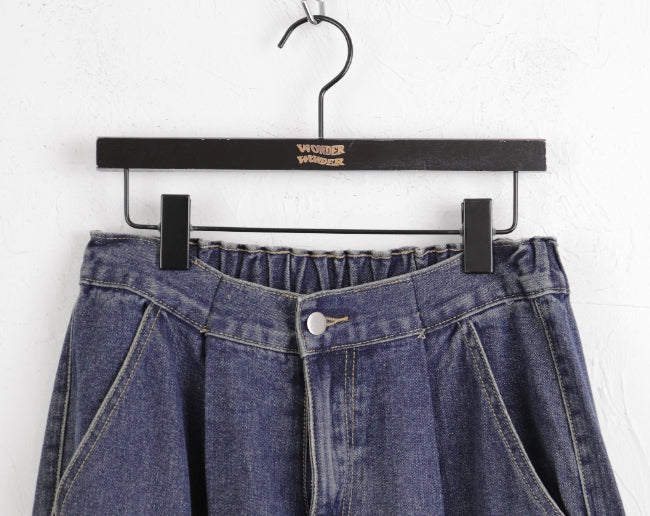 [MADE]ウコピンタックカーゴバックバンディングロングワイドデニムパンツ