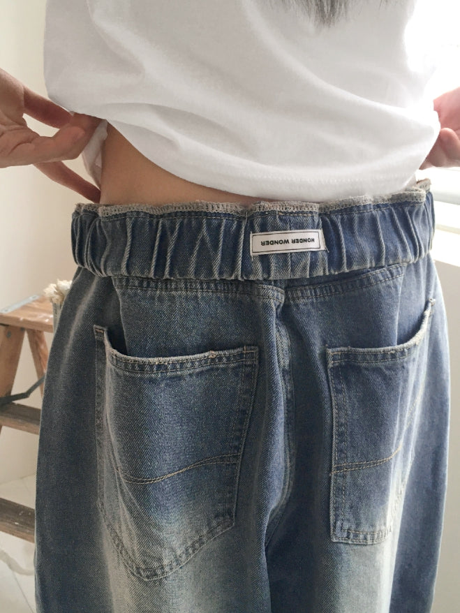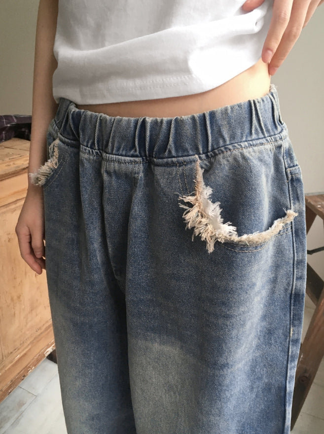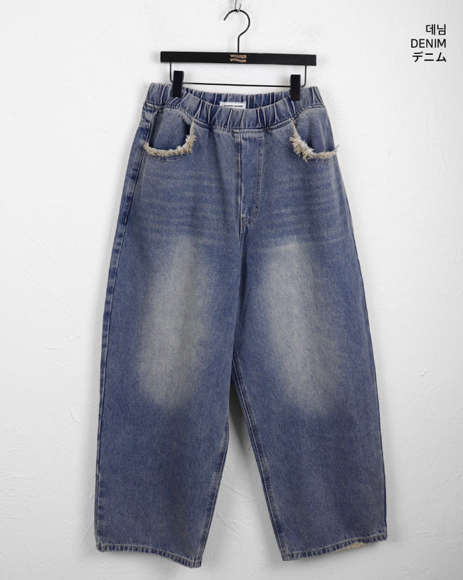 [MADE] Villard Surgical Damage Washing Banding Long Wide Denim Pants
