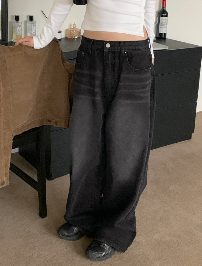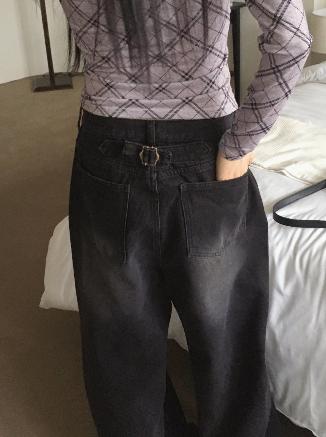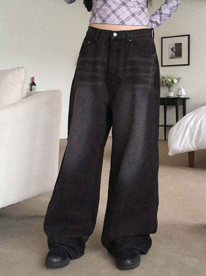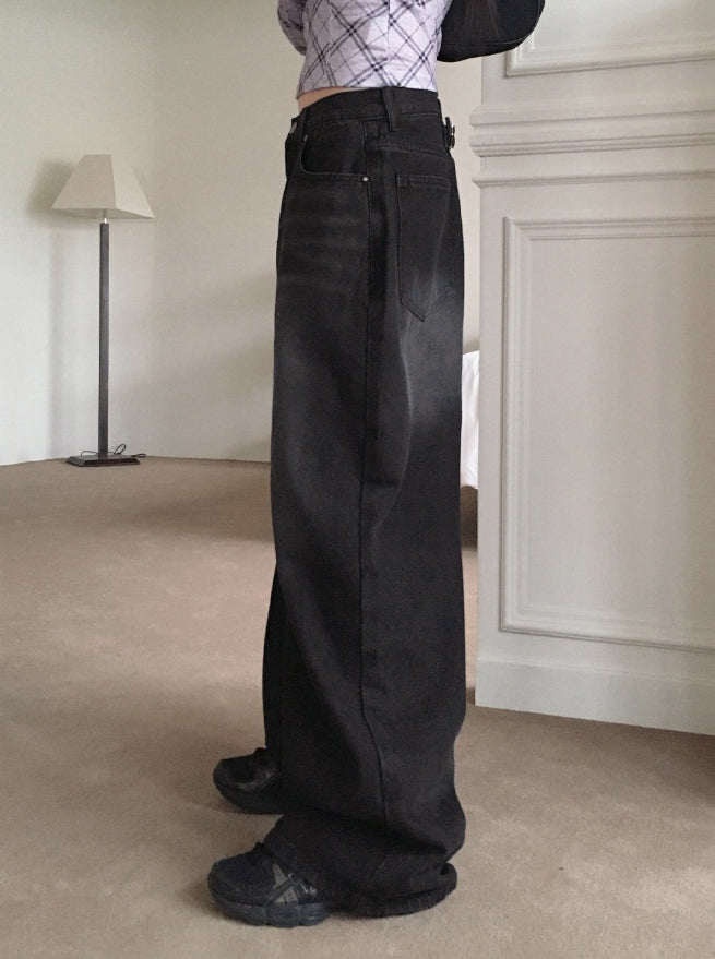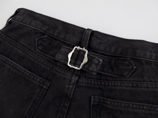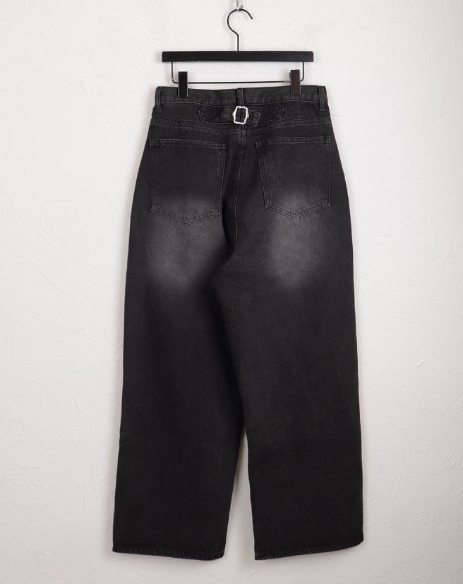 [MADE]ボルキンバックポイントビジョウォッシュ加工ロングワイドダークデニムパンツ