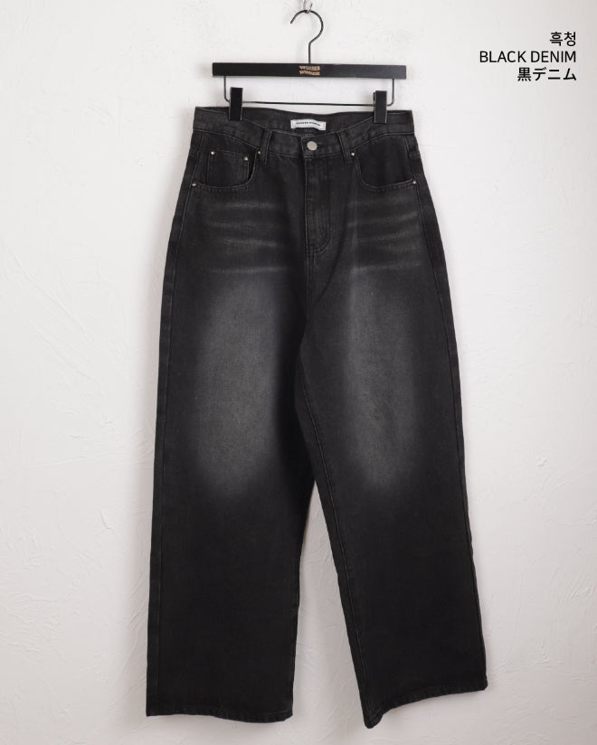 [MADE] Volkin Back Point Vizo Washing Long Wide Dark Denim Pants