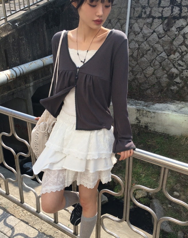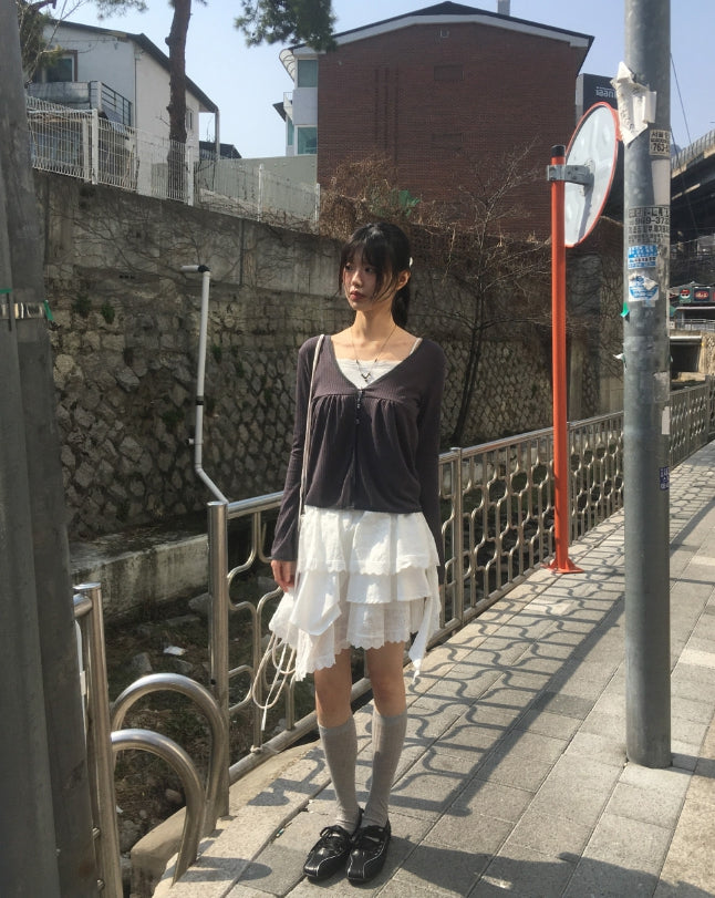 [MADE] Yujun Lace Button Ribbed Cardigan