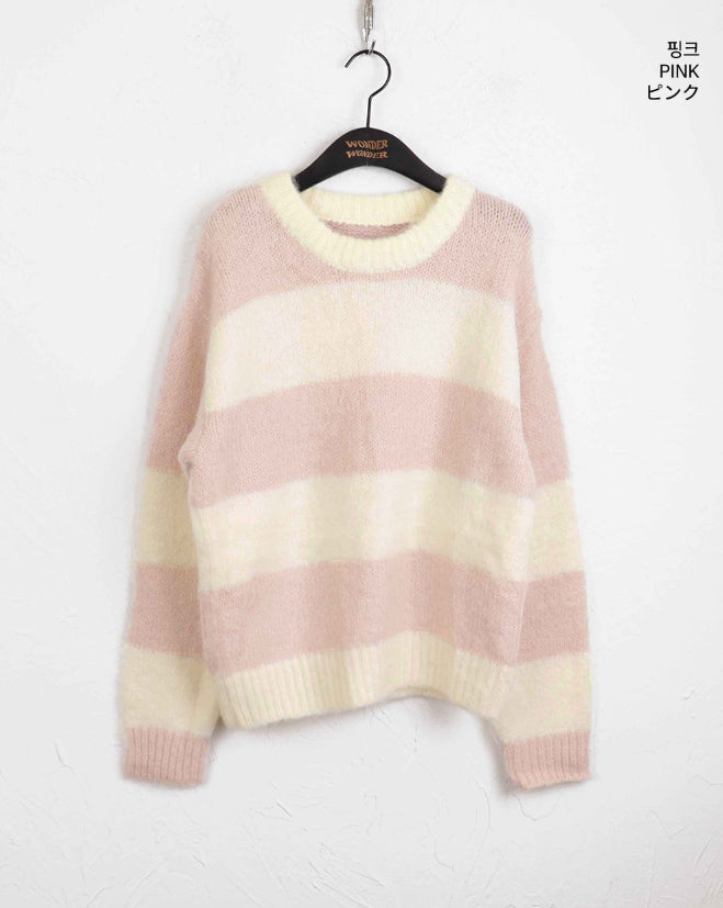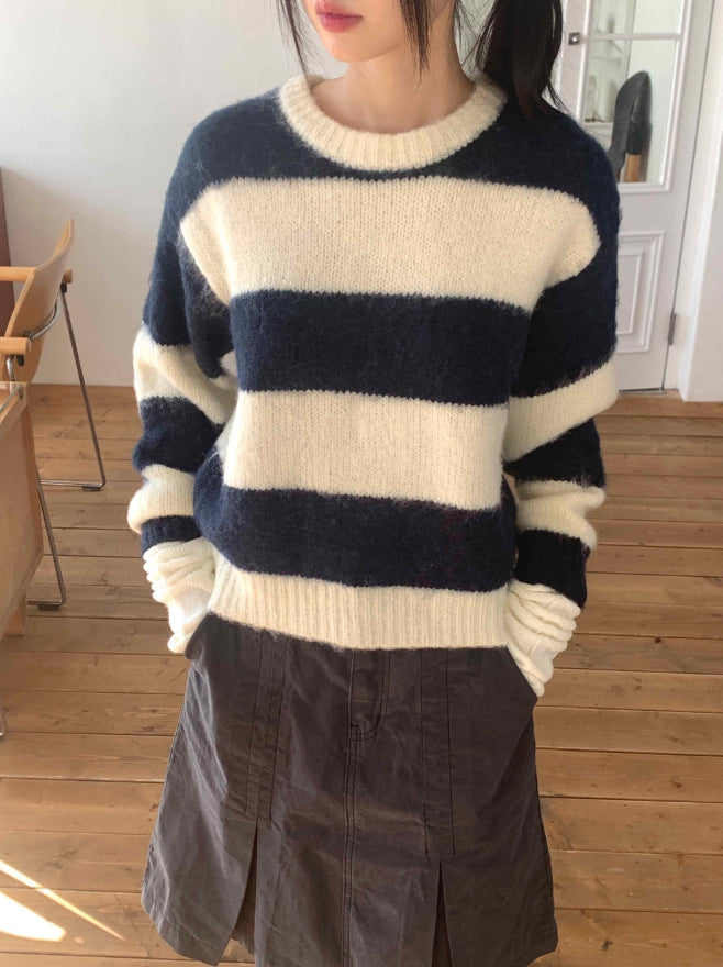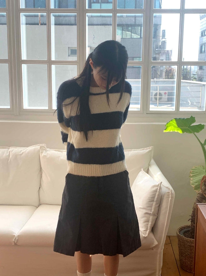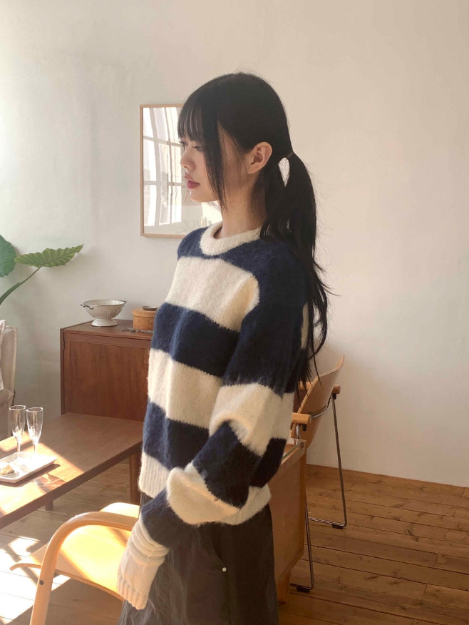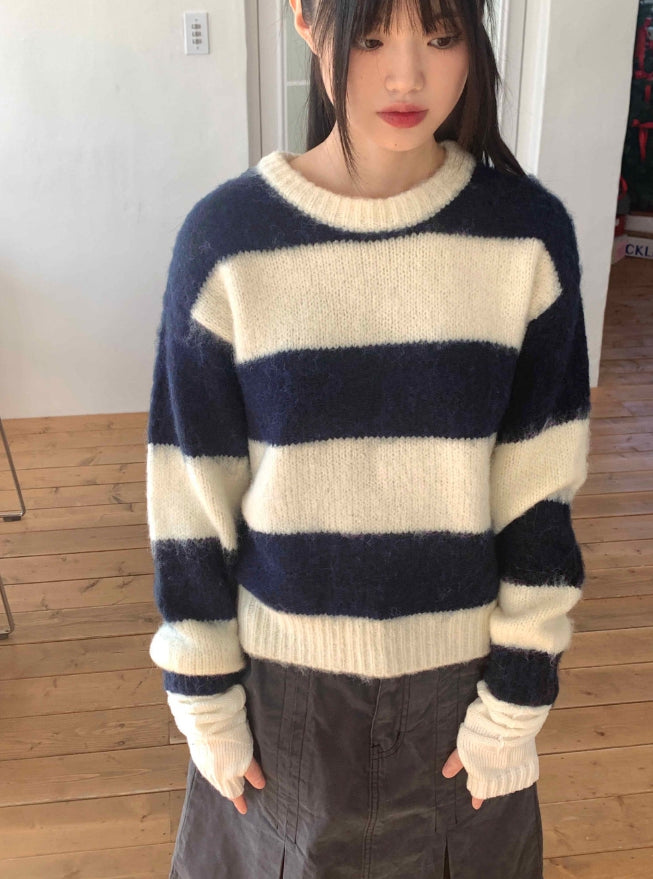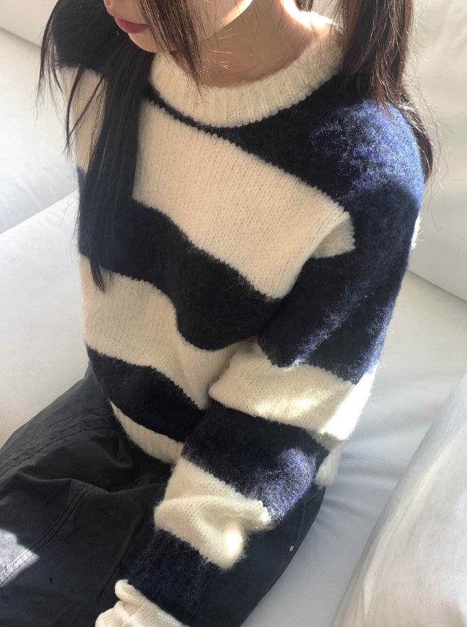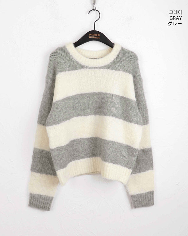 Mayo Wool Stripe Angora Semi-Crop Knit