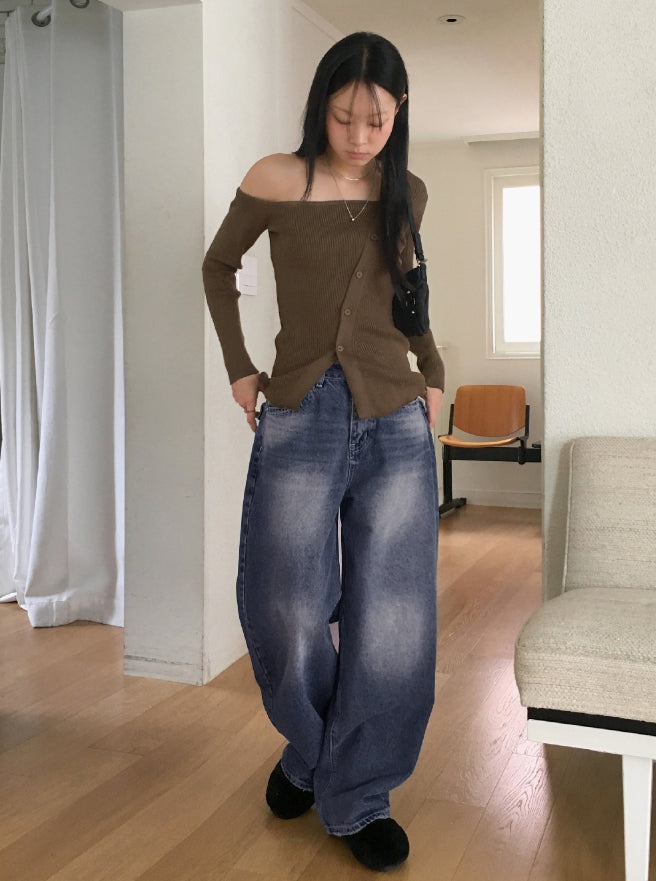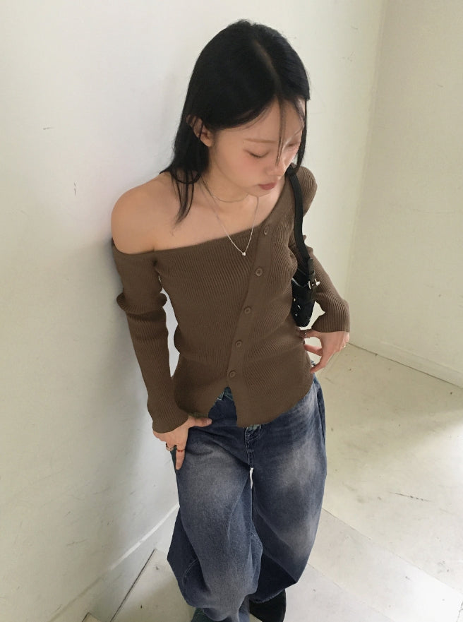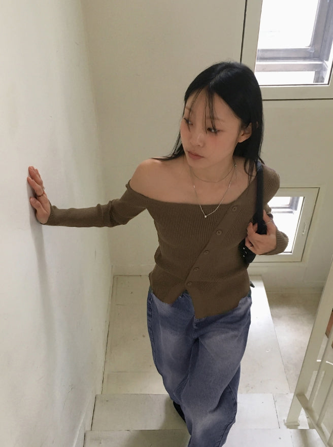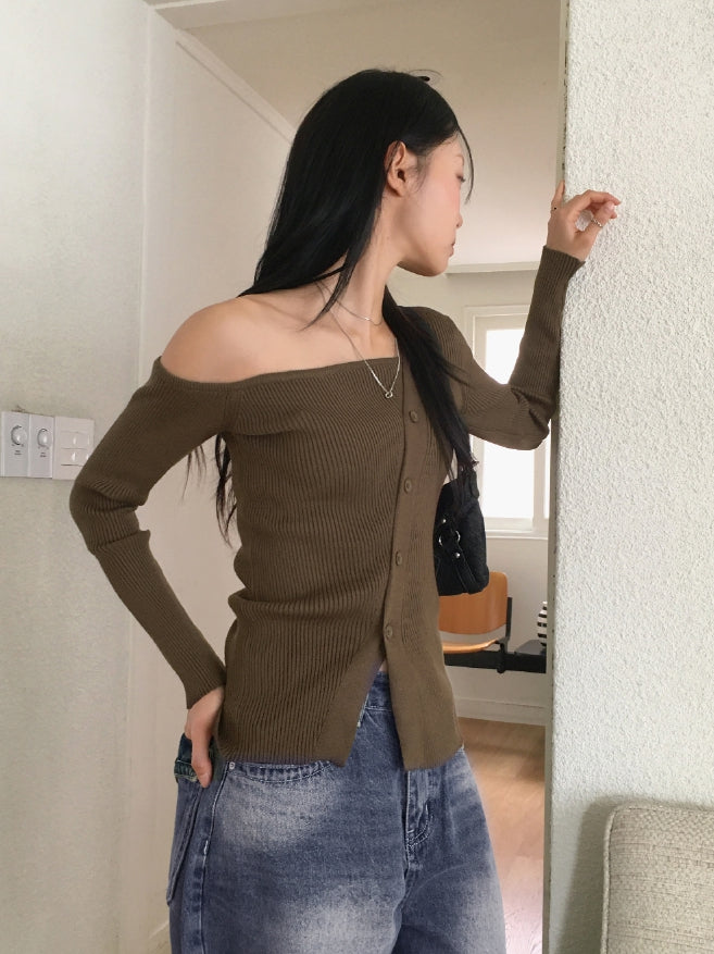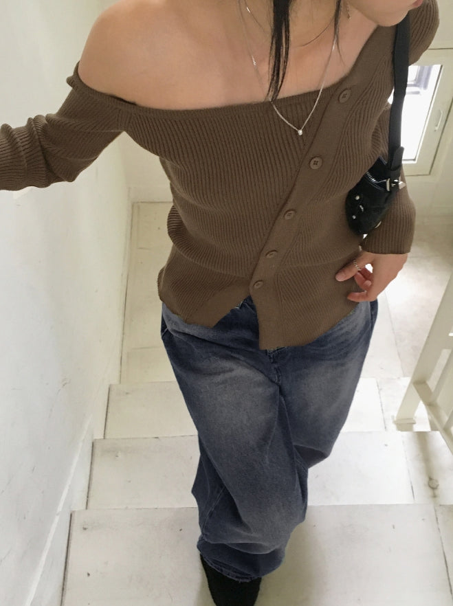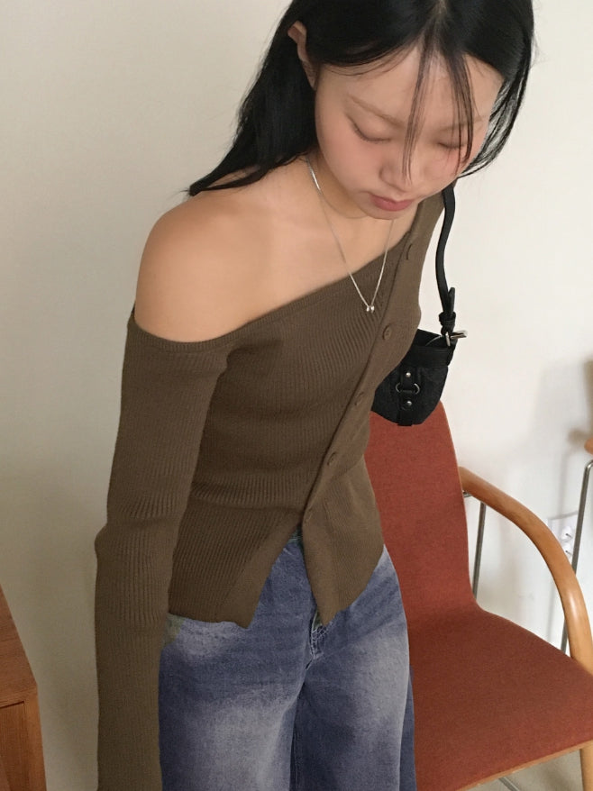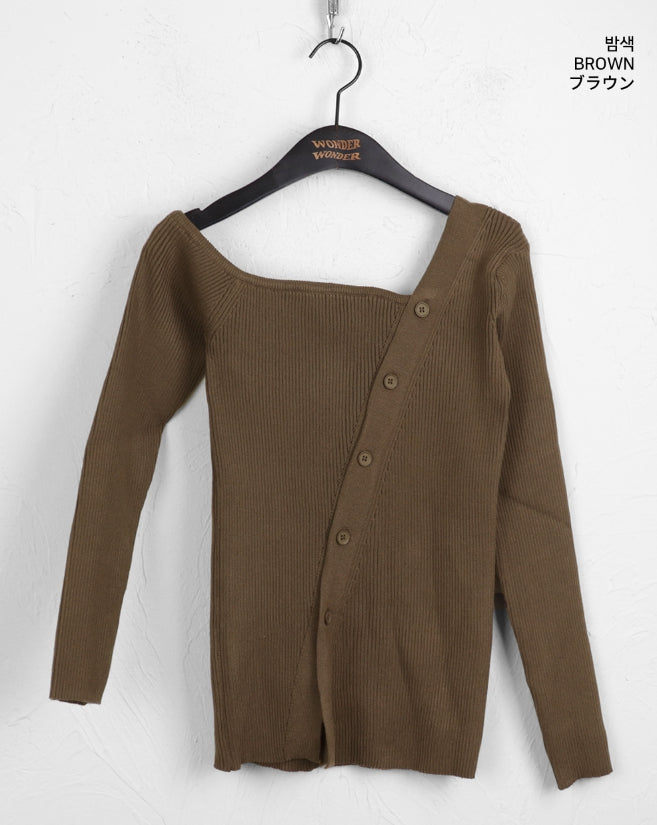 Medic Unbalance One Shoulder Silt Diagonal Button Long Sleeve Knit