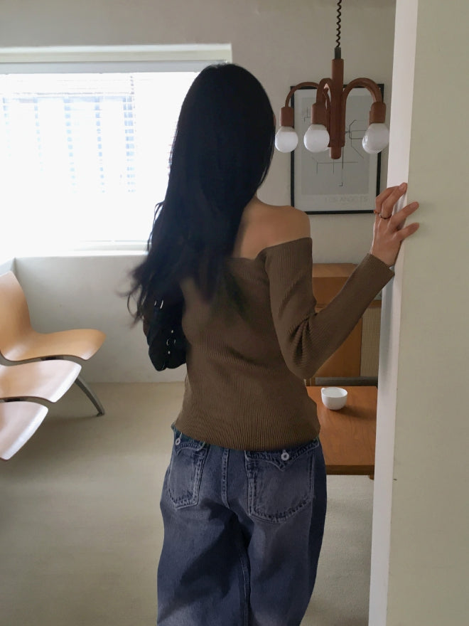 メディックアンバランスワンショルダースリットボタン長袖ニット