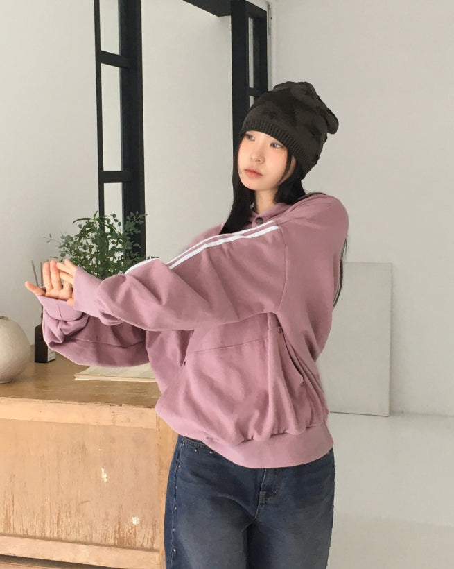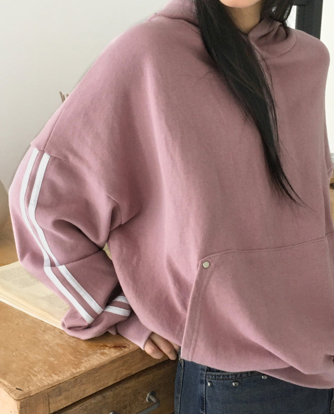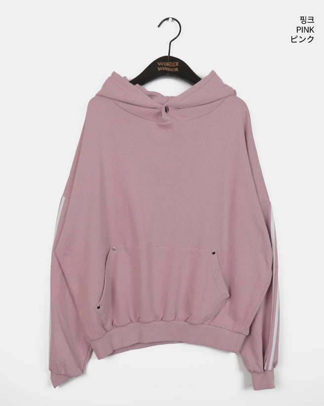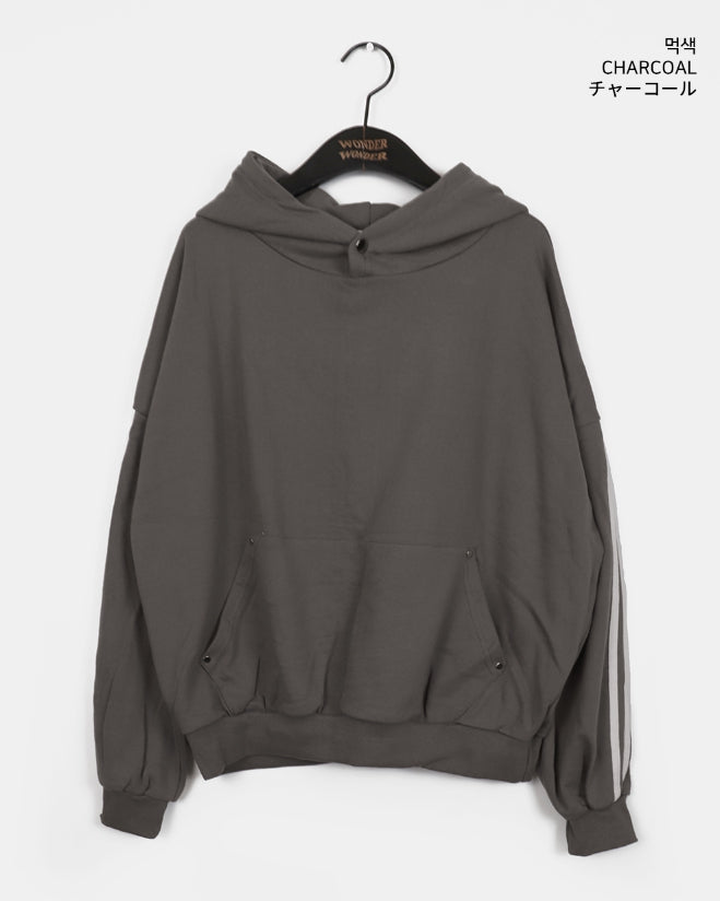 Mickle Track Color Matching Snap Rivet Overfit Hoodie