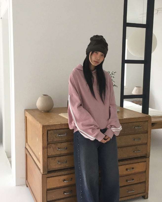 Micle Track Color Snap Rivet Oversized Fit Hooded T-shirt