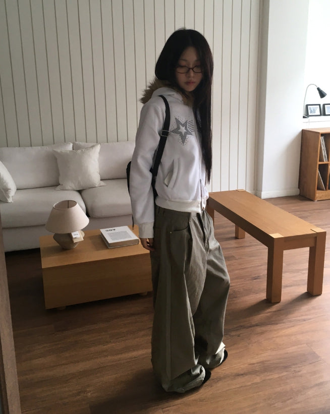 [ミンク起毛]ソネクラッスリングコットンワイドカーゴパンツ