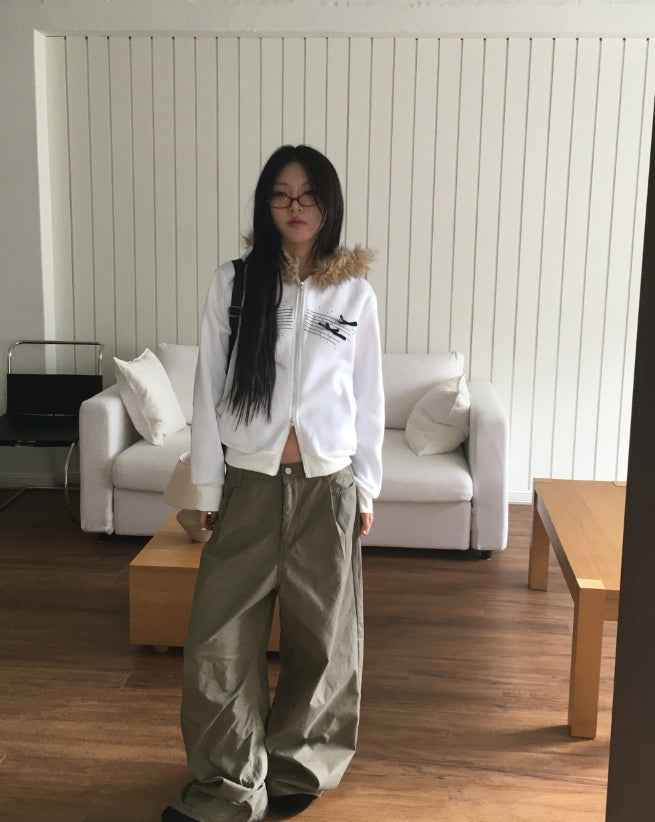 [Mink Fur] Sonek Rustling Cotton Wide Cargo Pants