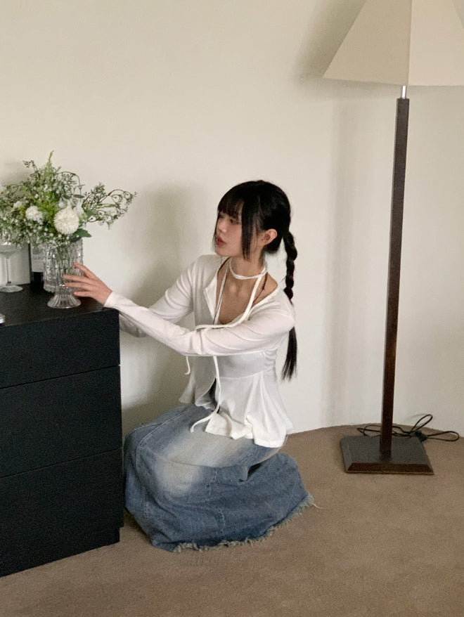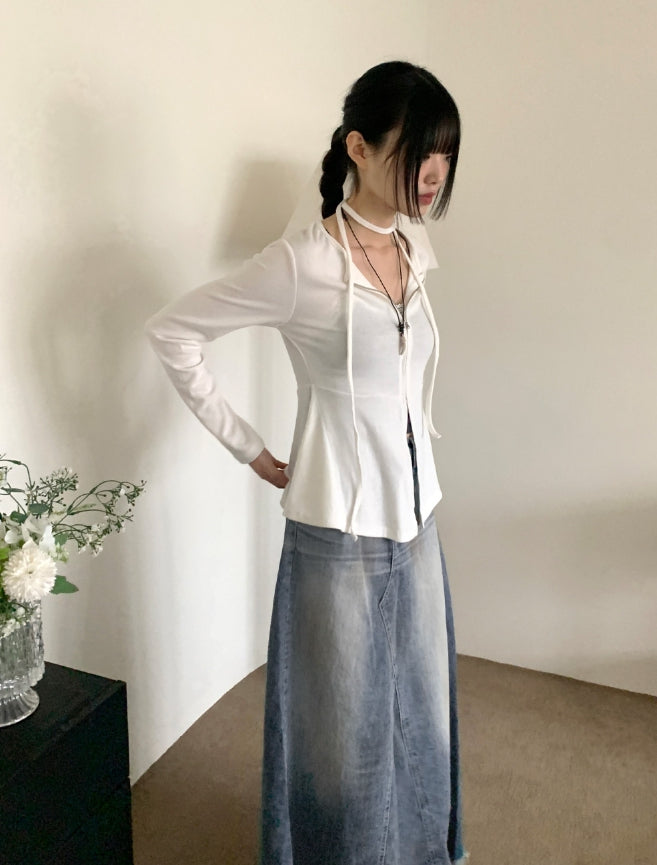 [Muffler SET] Cipi Choker Slit Zipper Cardigan