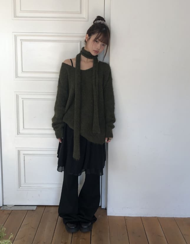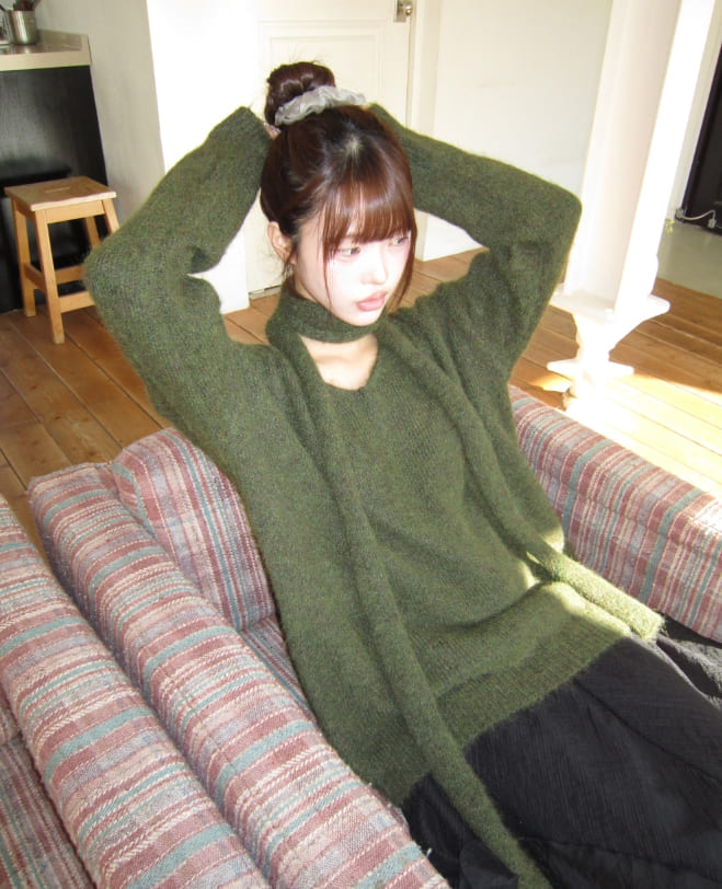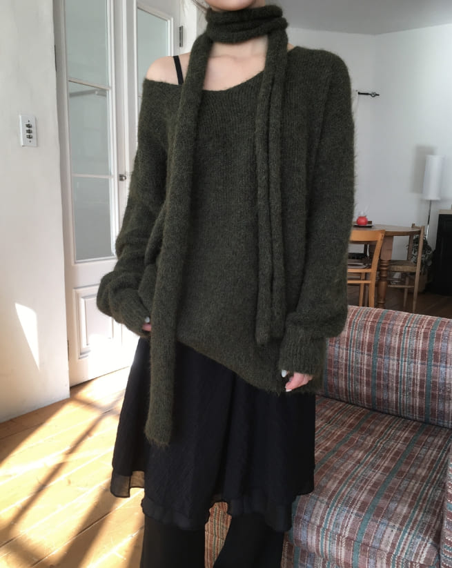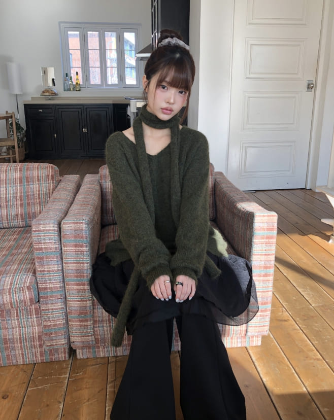 [Muffler SET] Dori Muffler Loose V-Neck Knit