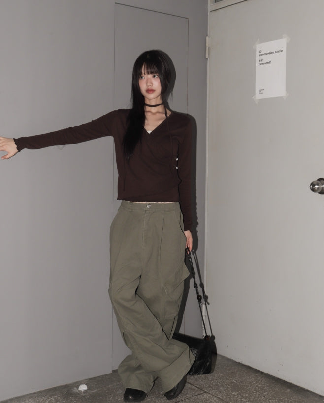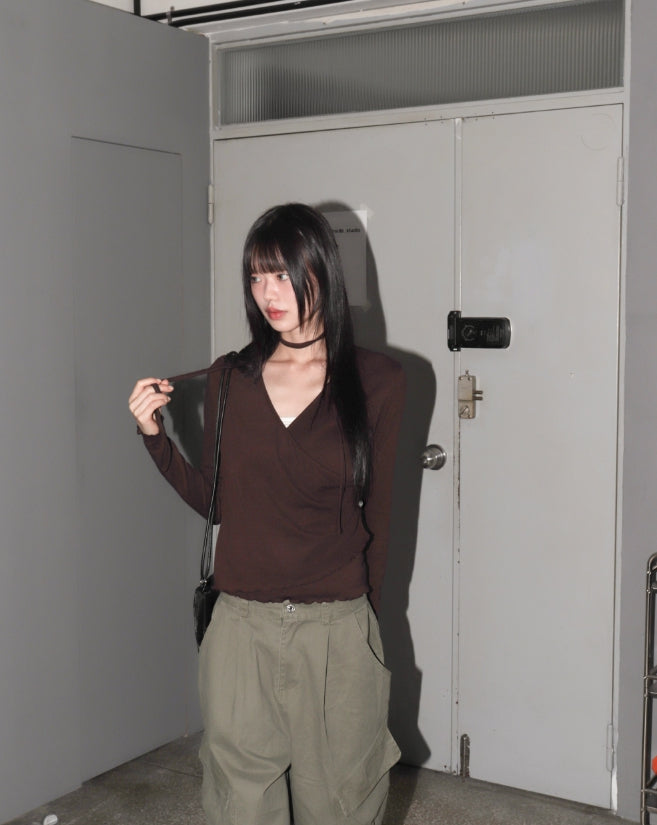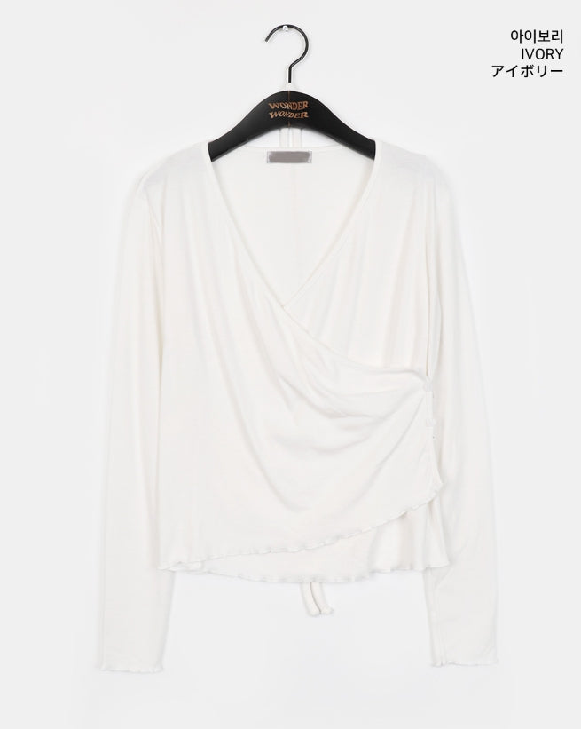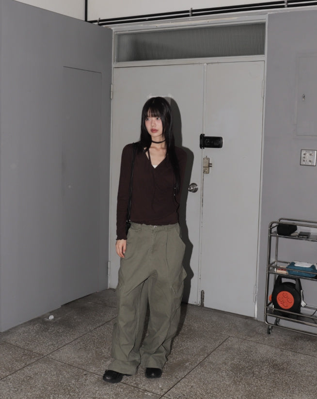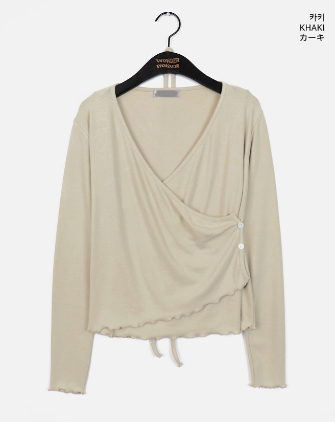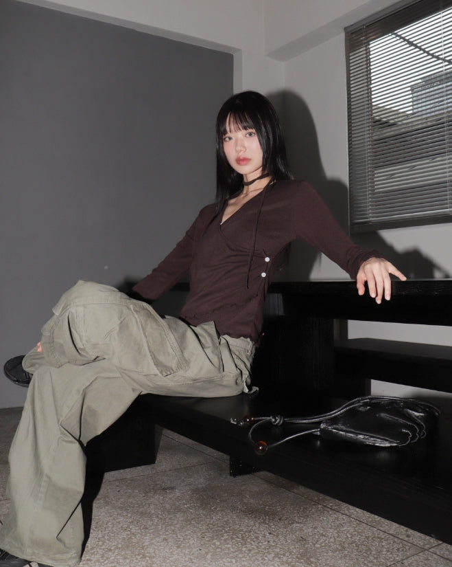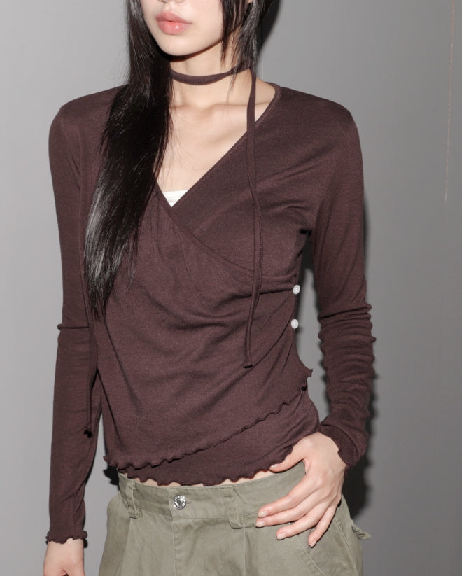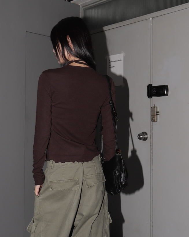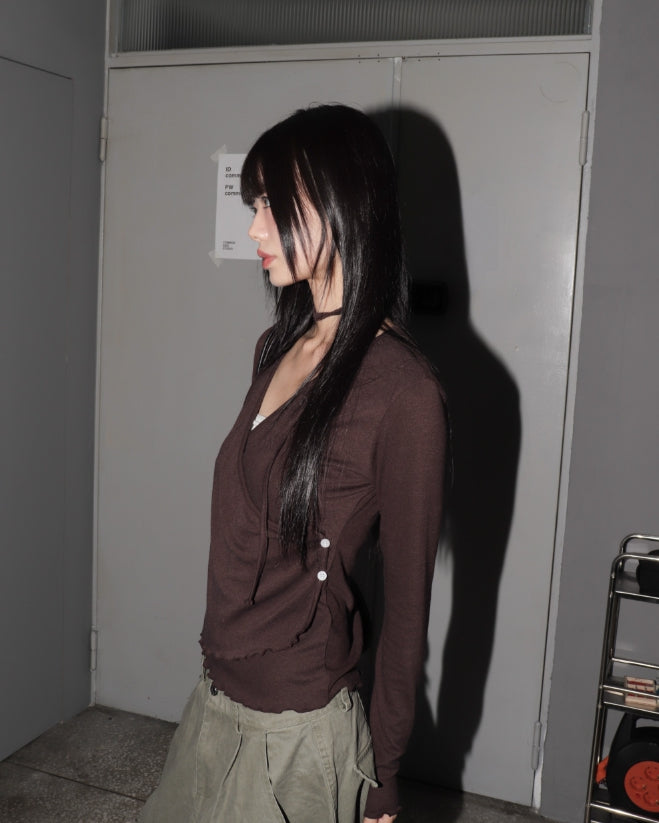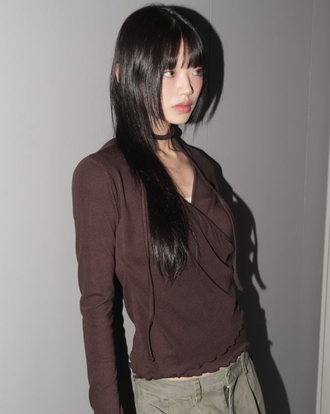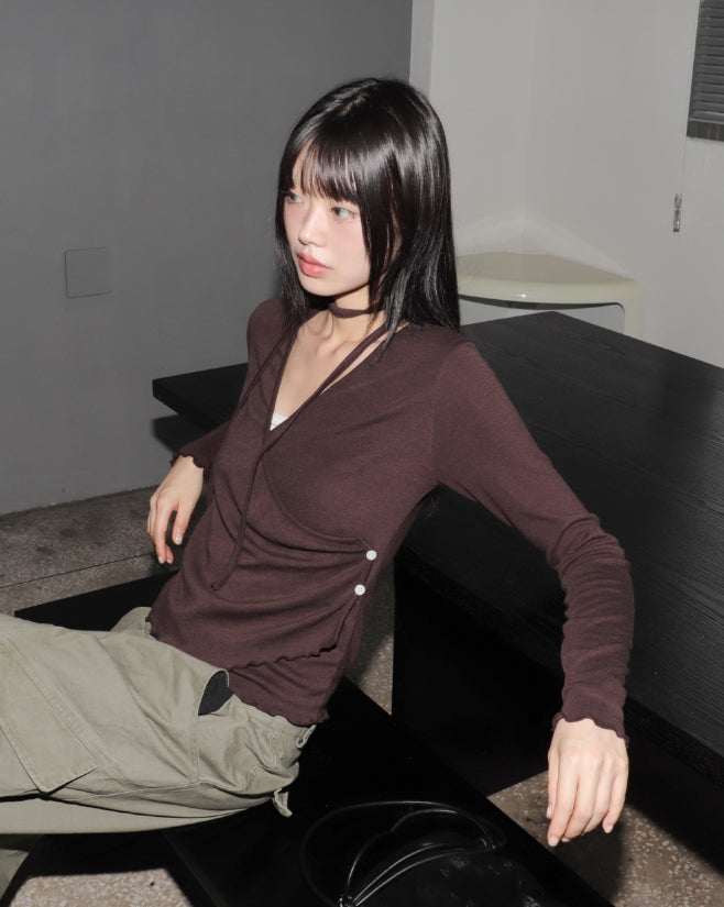 [Muffler set] Hicker tie strap muffler wrap button long sleeve T-shirt