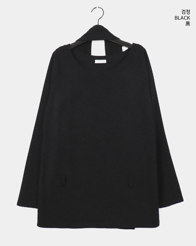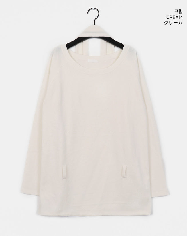 [マフラーセット]リトンストラップボートネックオフショルダーロングニットTシャツ