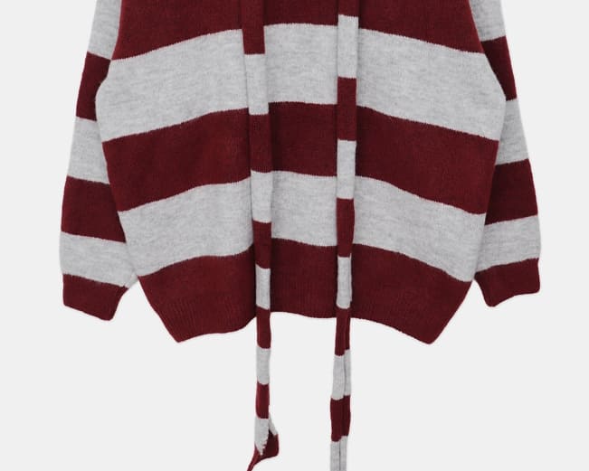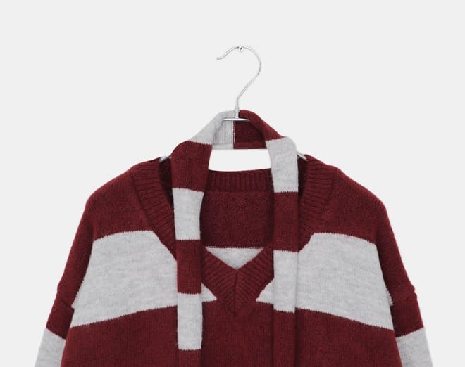 [Muffler SET] Phu Stripe Color Block V-Neck Loose Fit Long Sleeve Long Knit