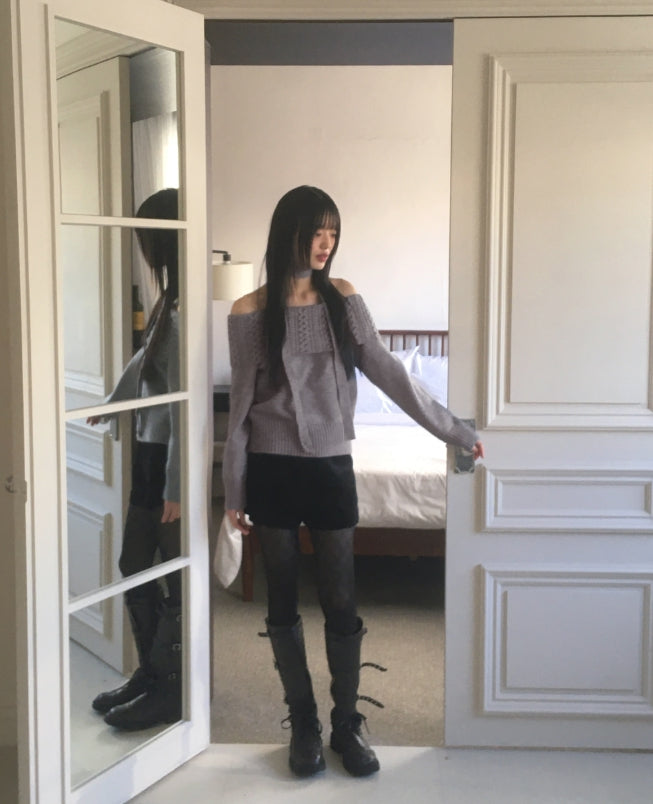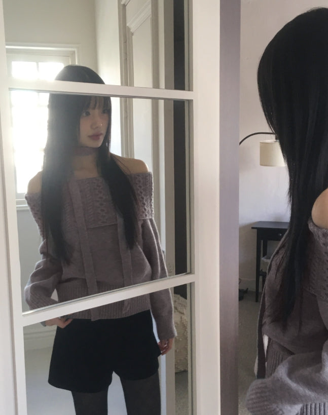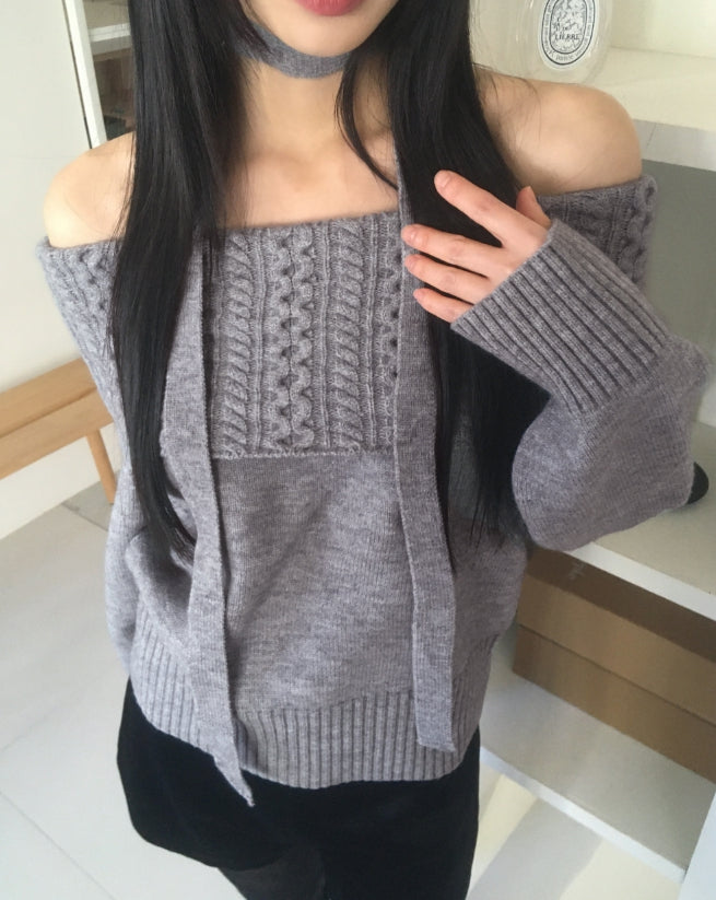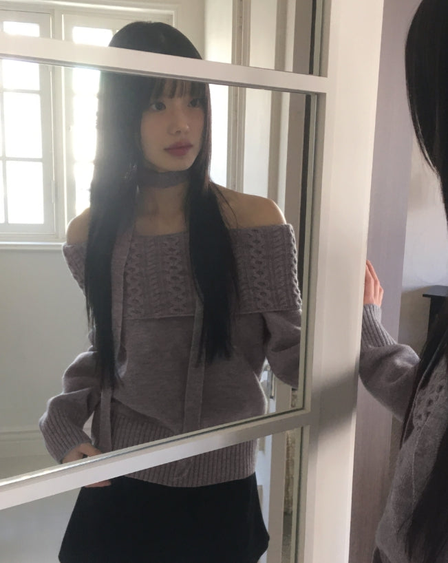 [マフラーセット]ウェックケーブルオフショルダーニットセット