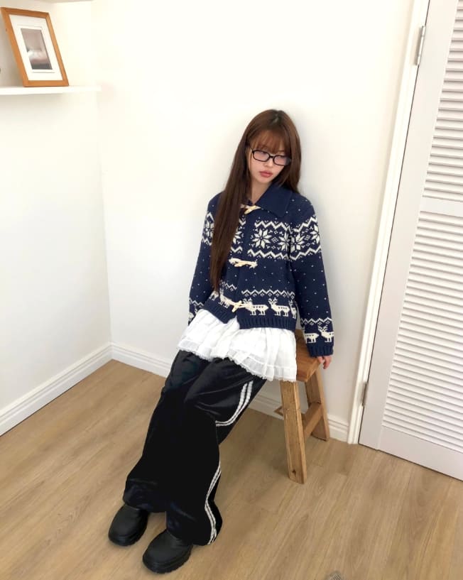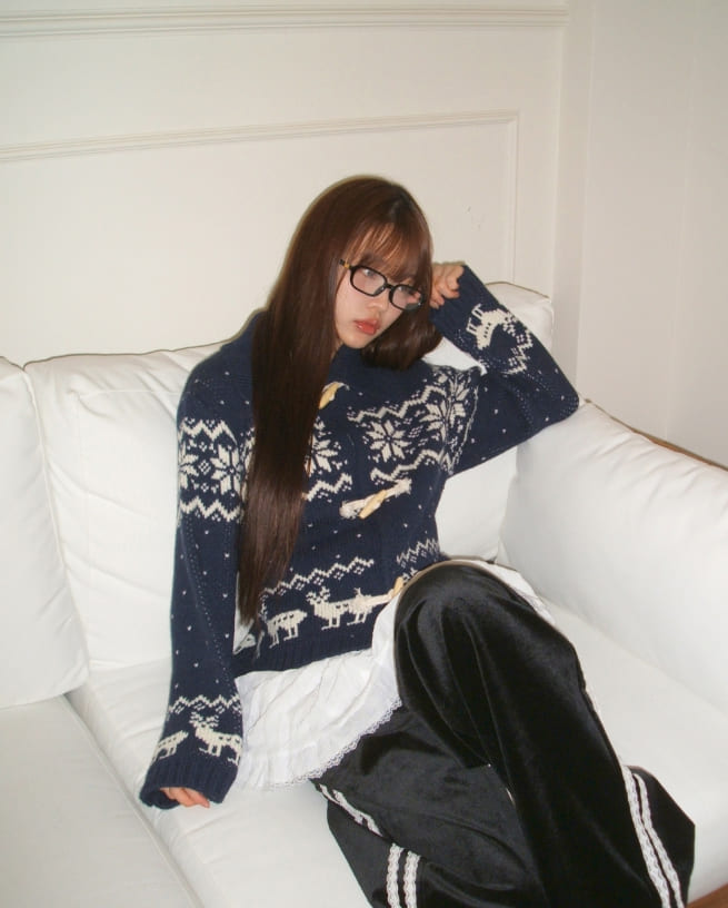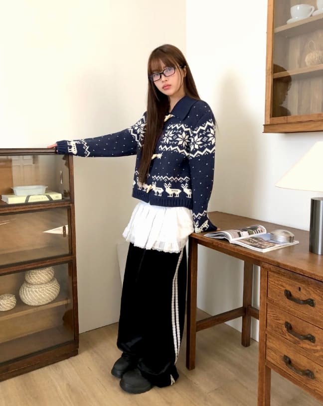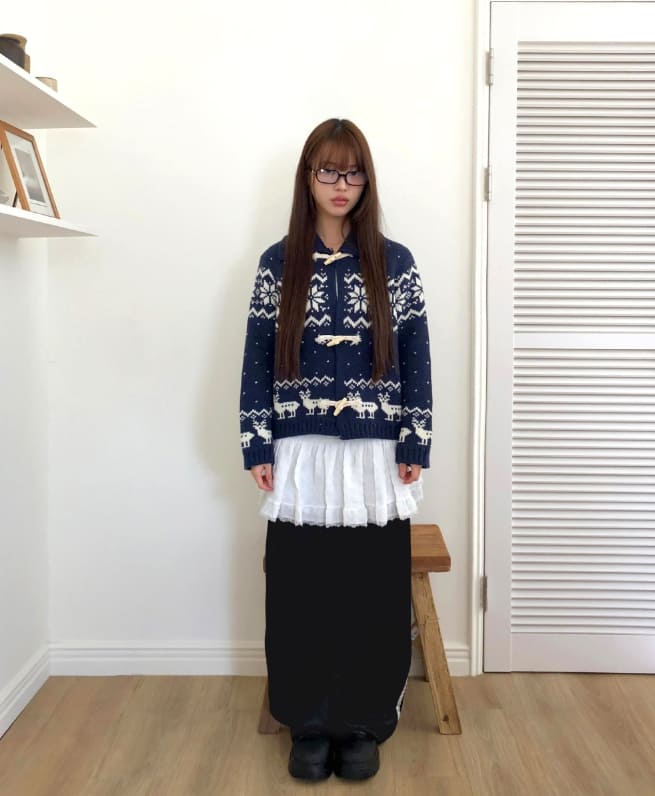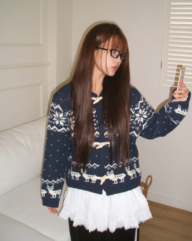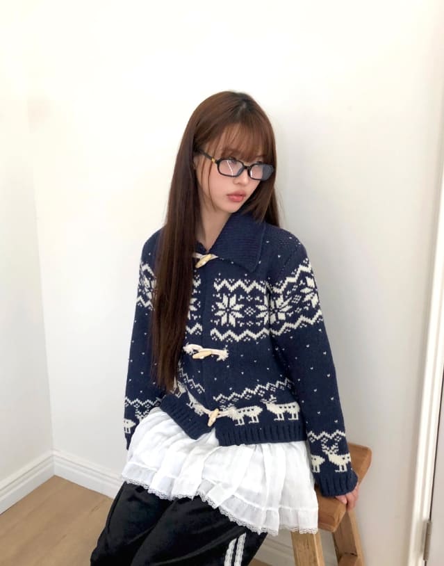 Murfu Nordic Kara Tteokbokki Loose Fit Long Sleeve Knit Cardigan