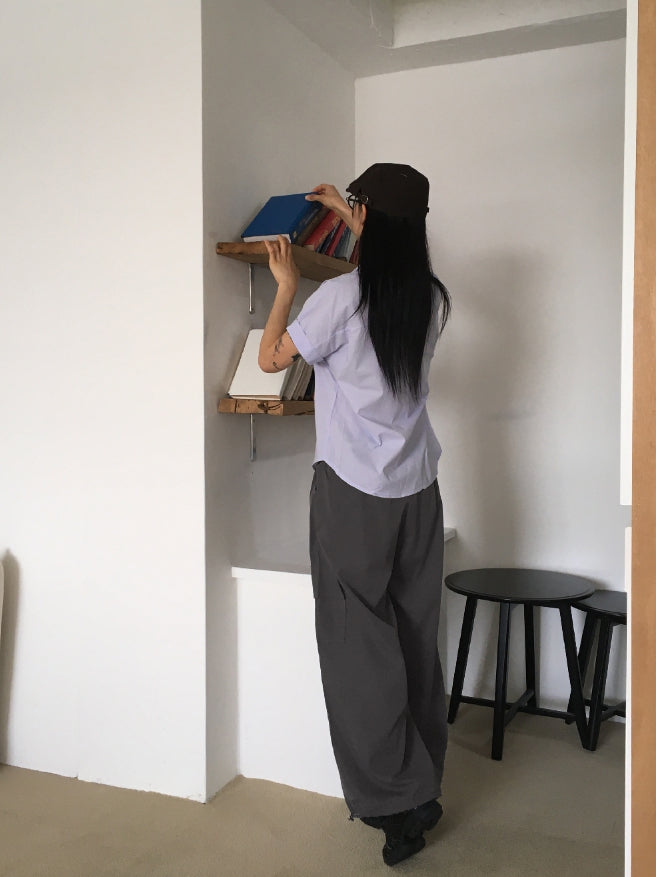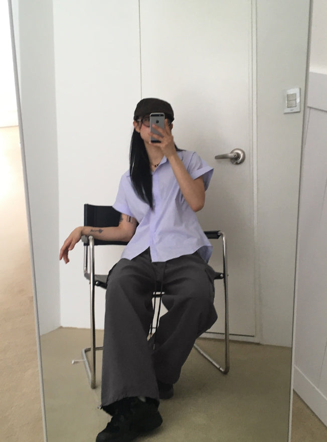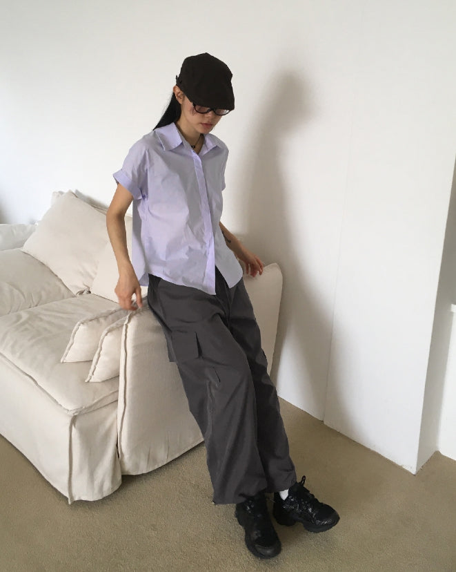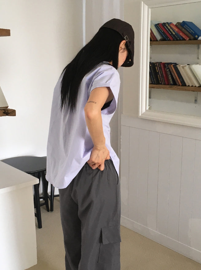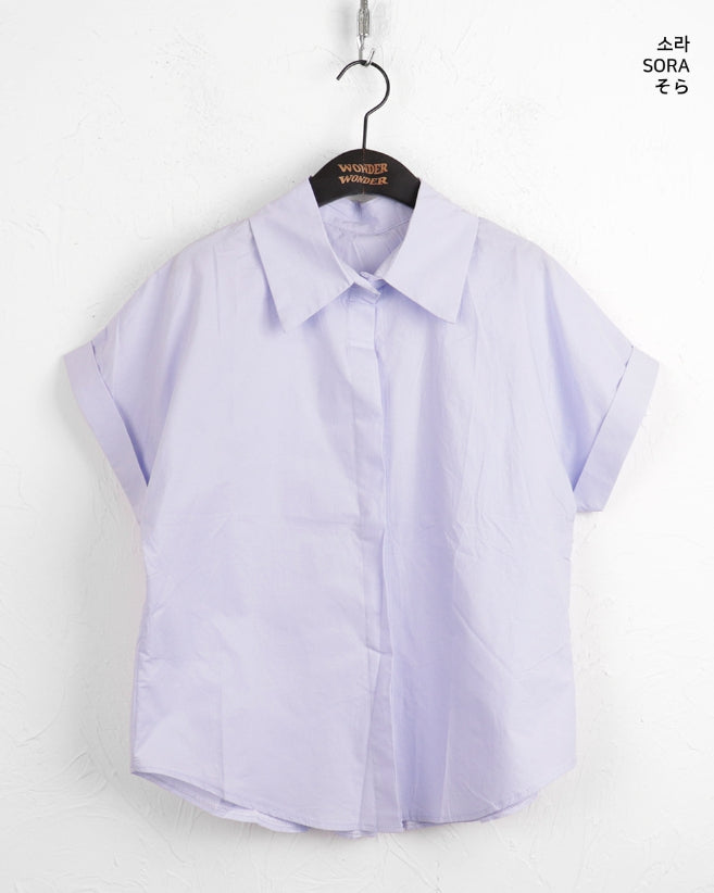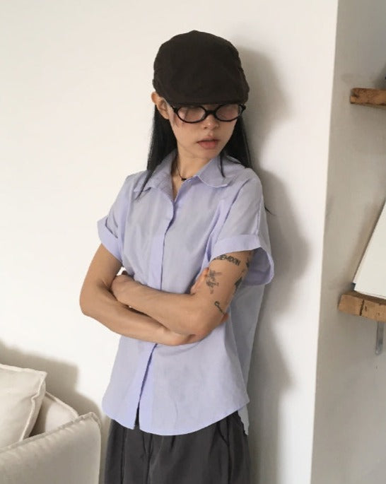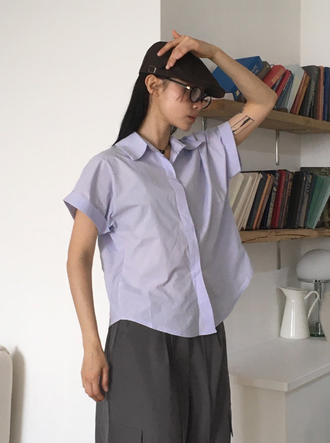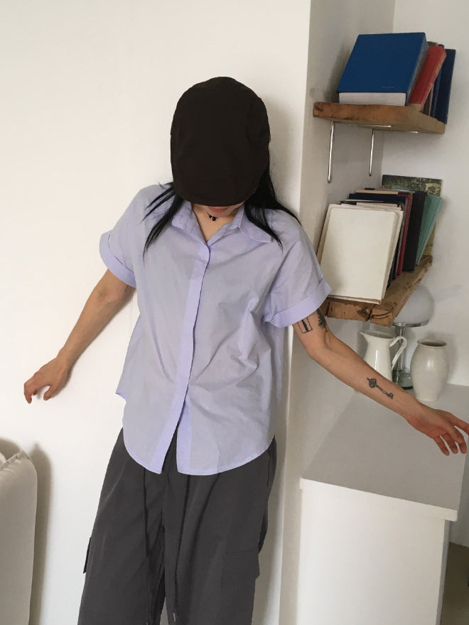 Muse Basic Rollup Rollup Cotton Short-Sleeved Shirt