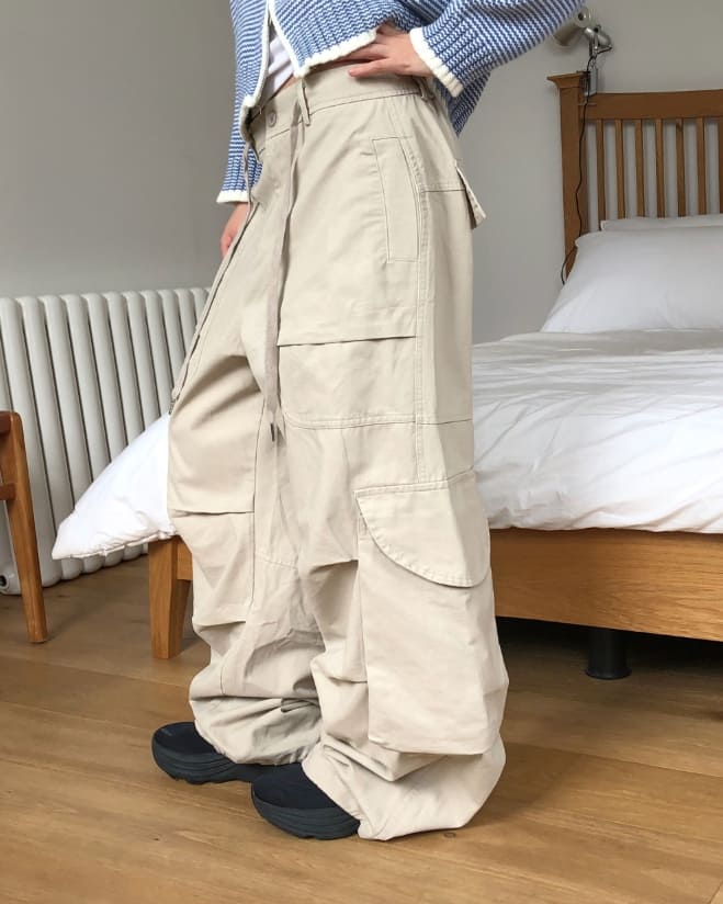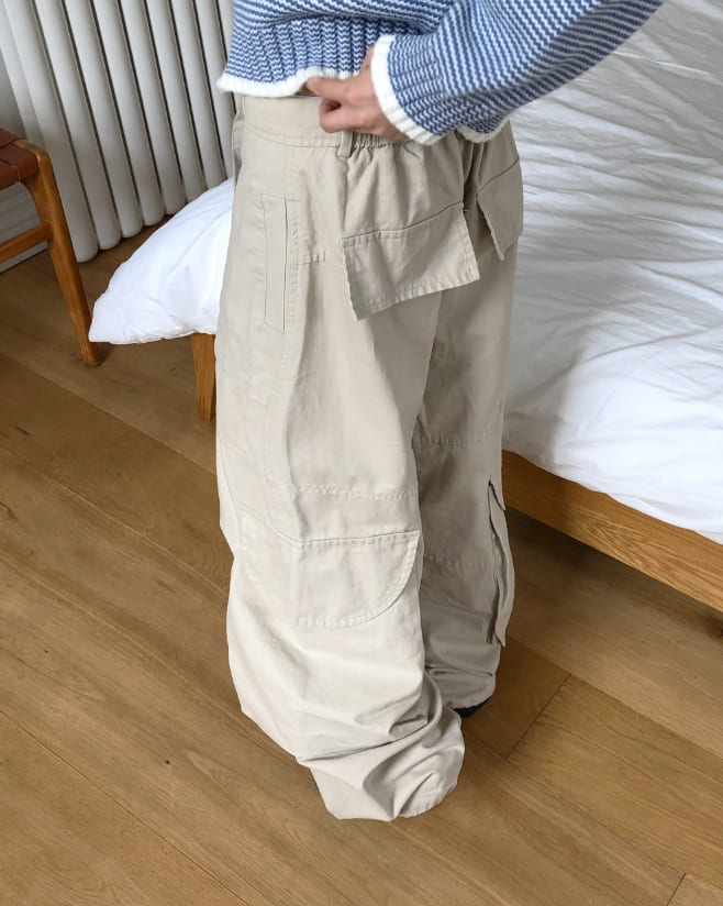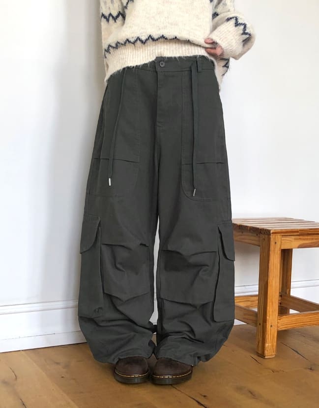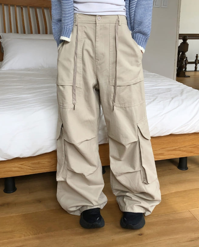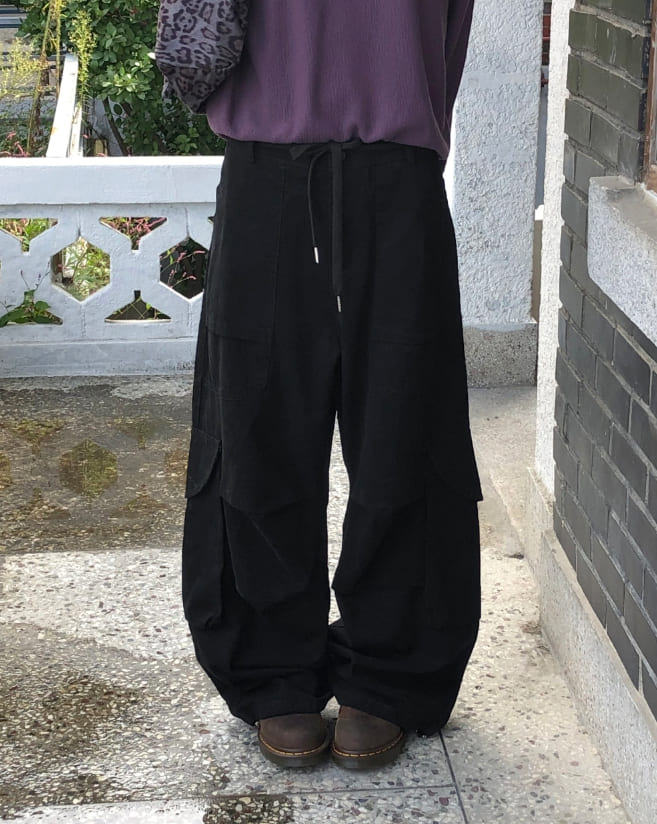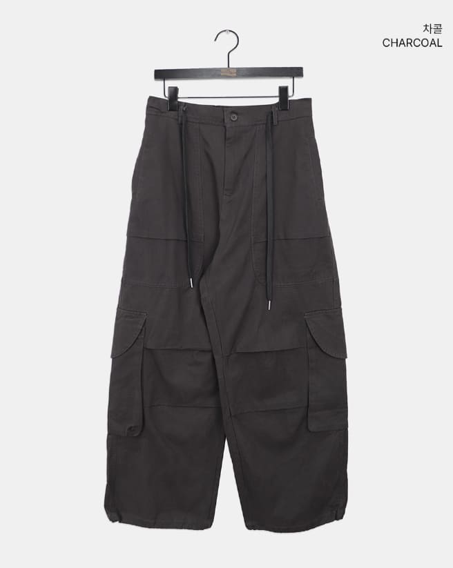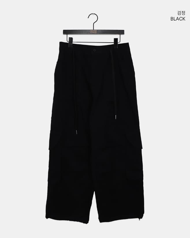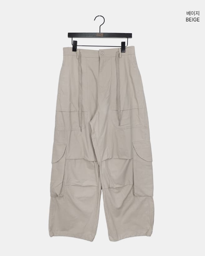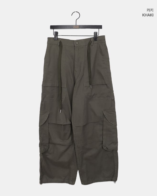モールドビッグポケットストラップカーゴワイドロングパンツ