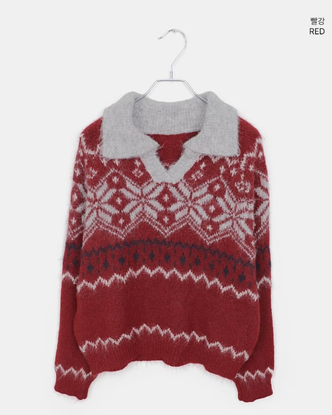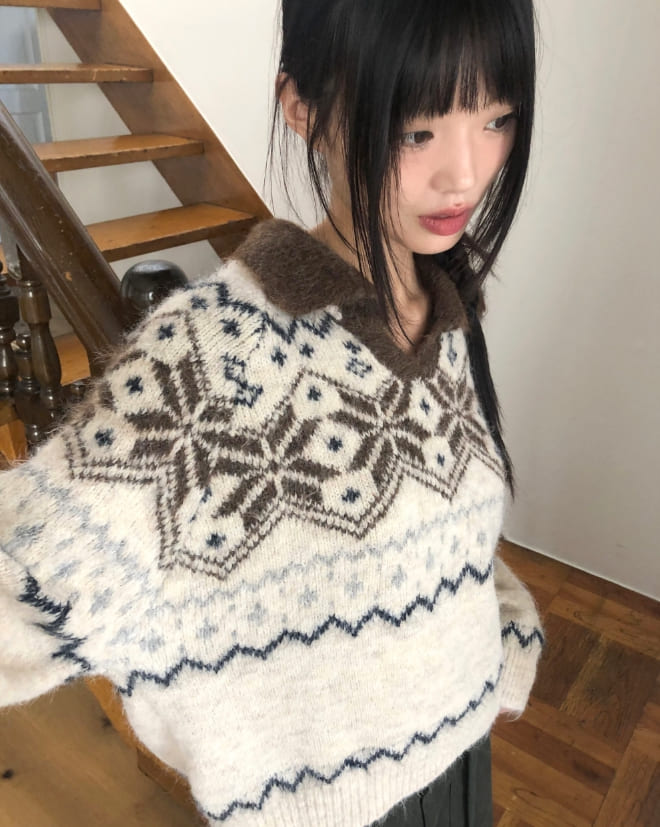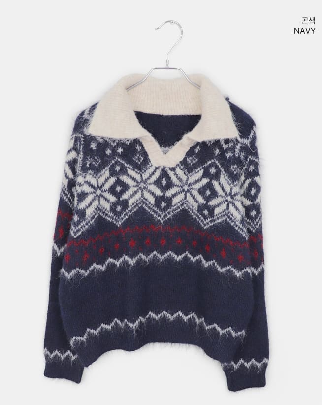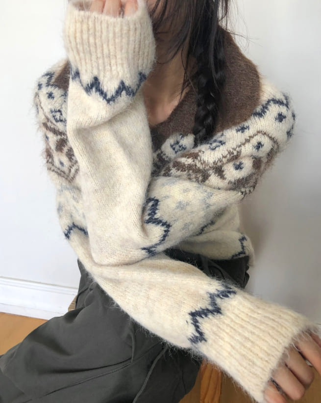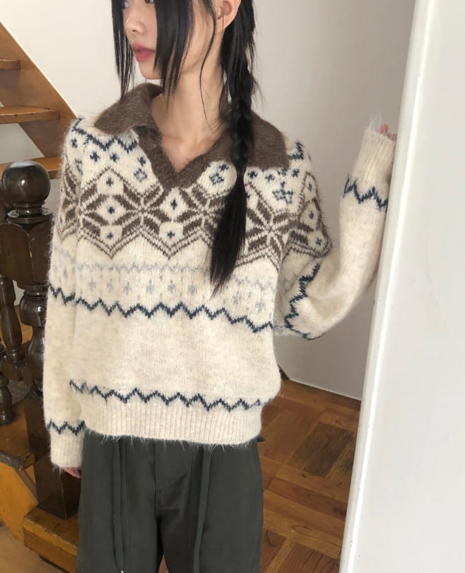 Neuel Nordic color matching collar loose fit long sleeve knit