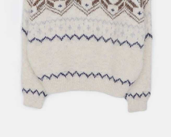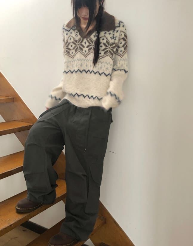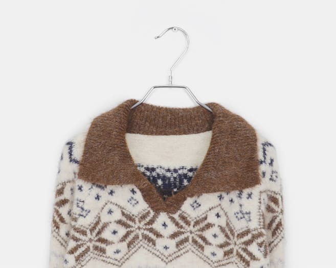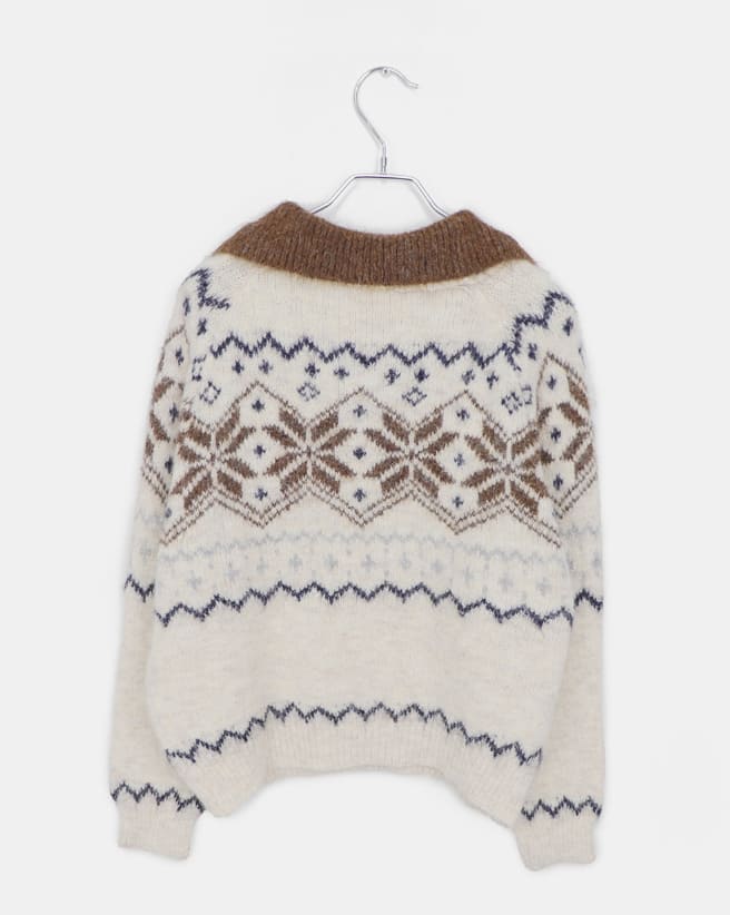 ヌエルノルディックカラー襟付きルーズフィット長袖ニット