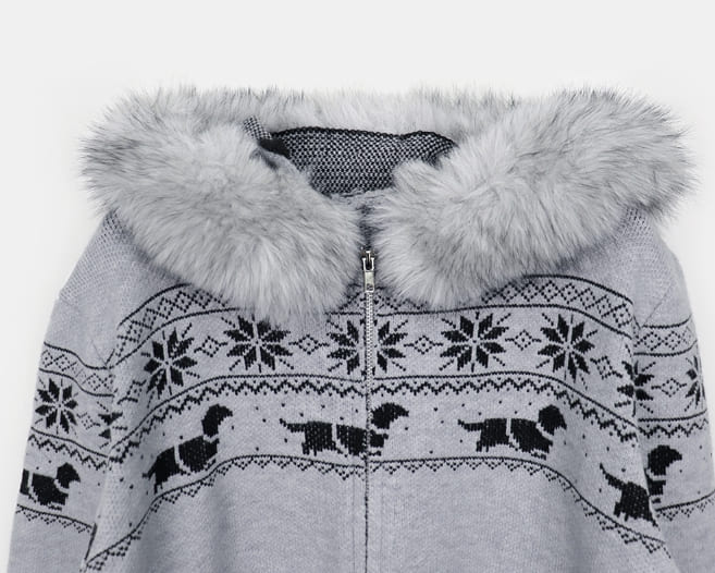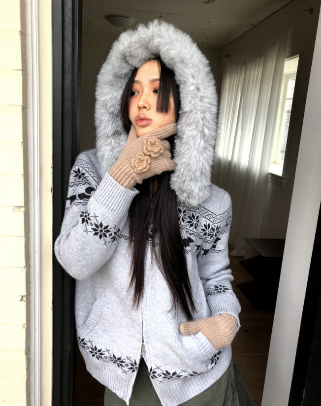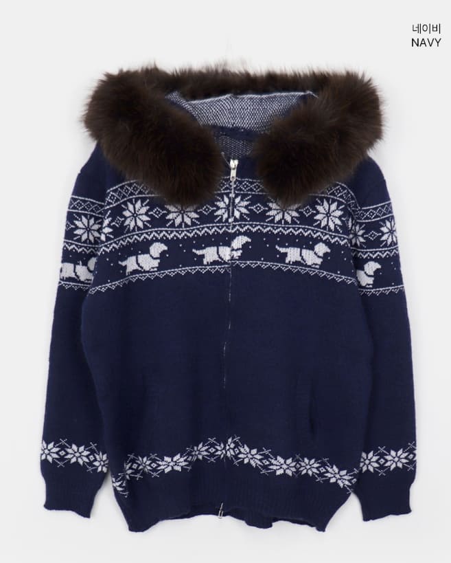 ニューアノルディックファーツーウェイニットフードジップアップ