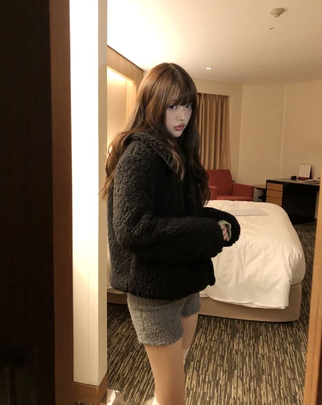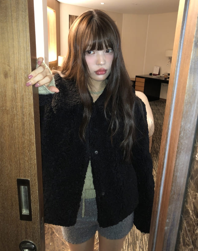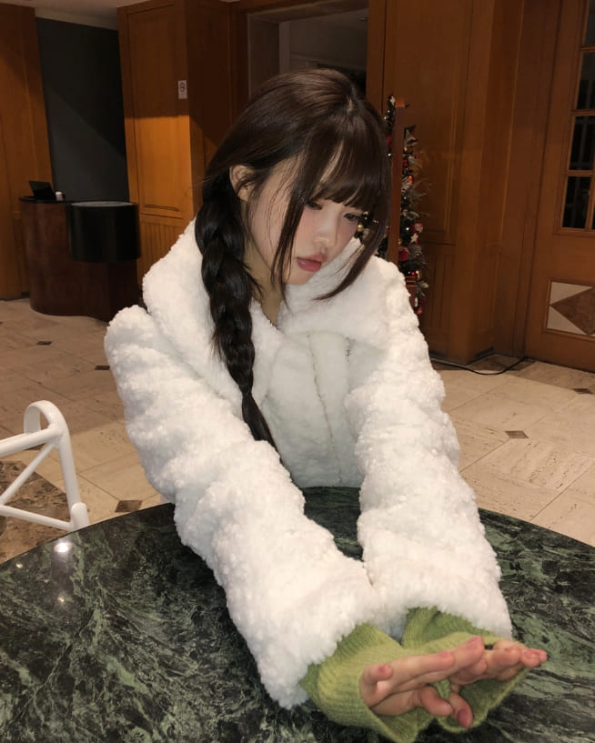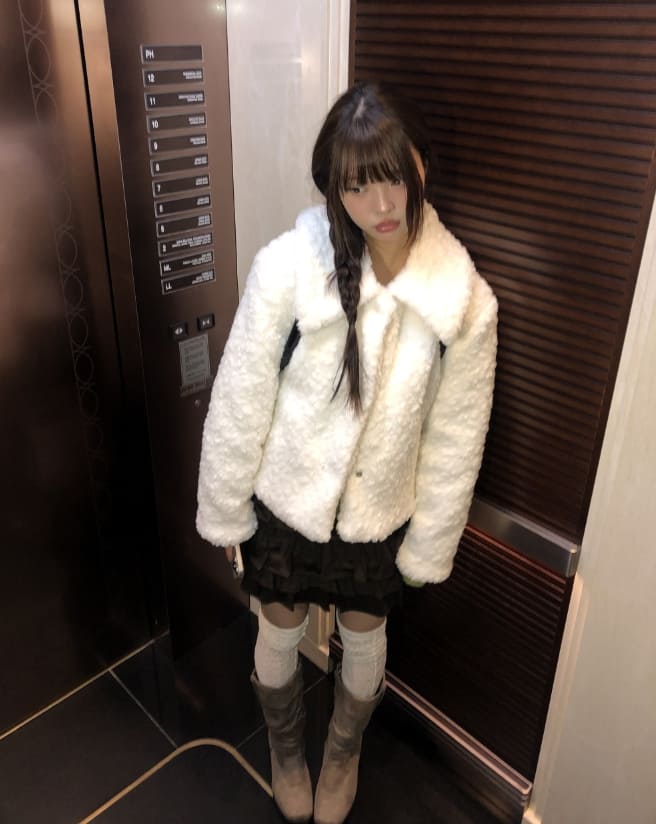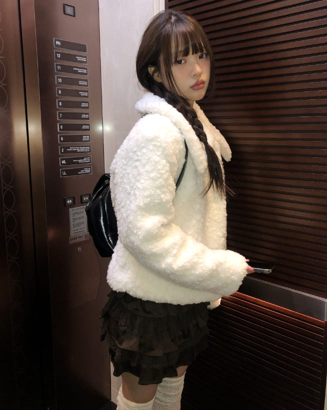 Neyu collar wool fluffy quilted fur half jacket