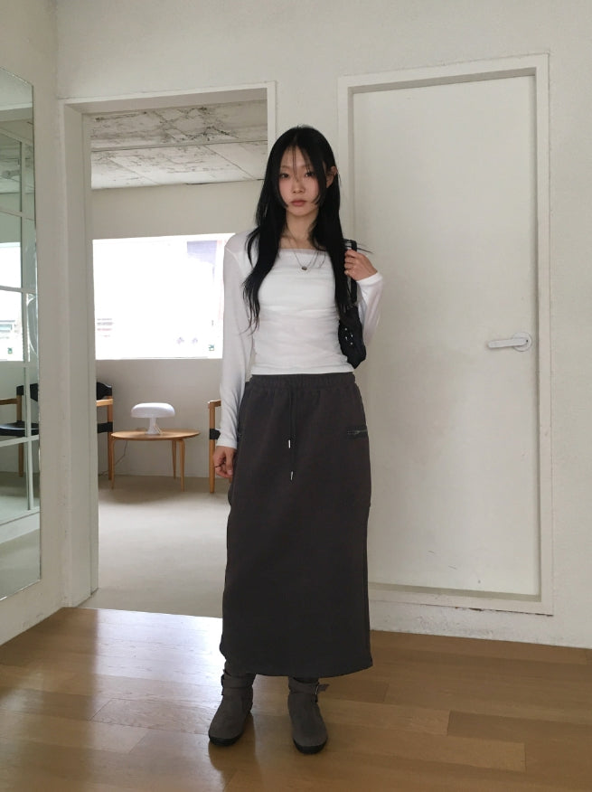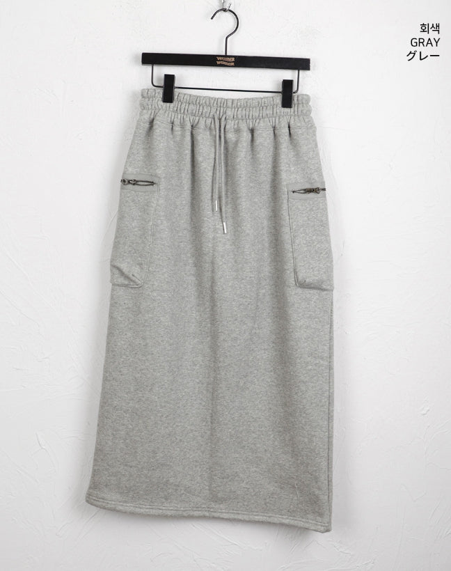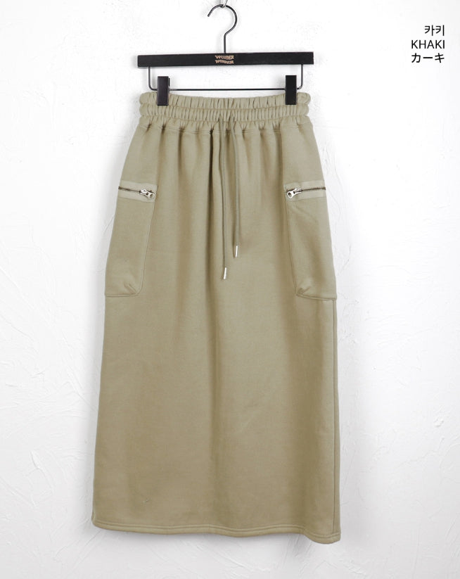 Nick Zipper Bun Pocket Pile Brushed Long Skirt