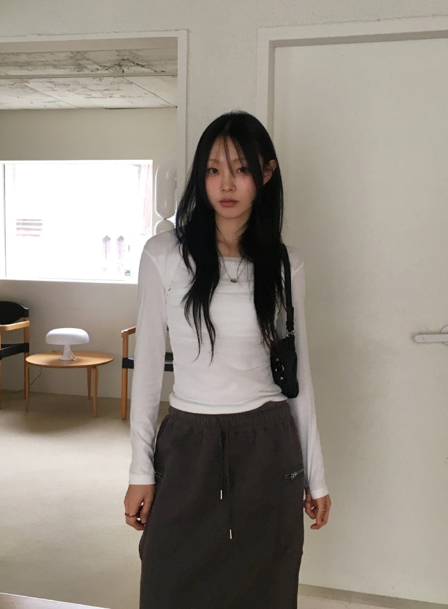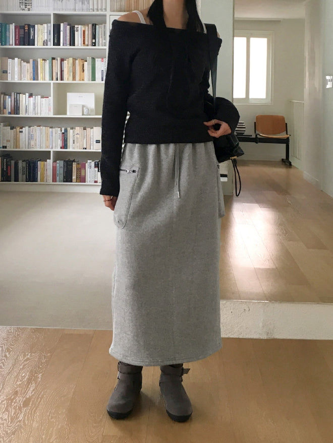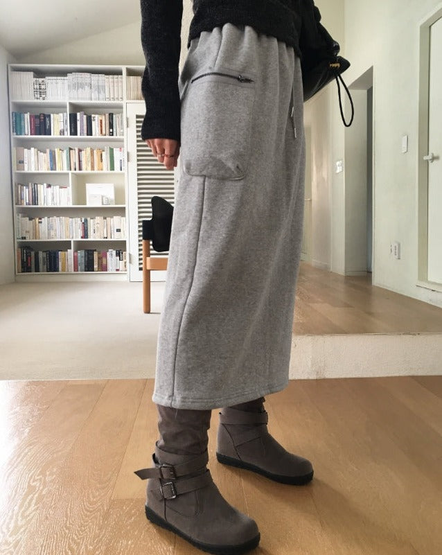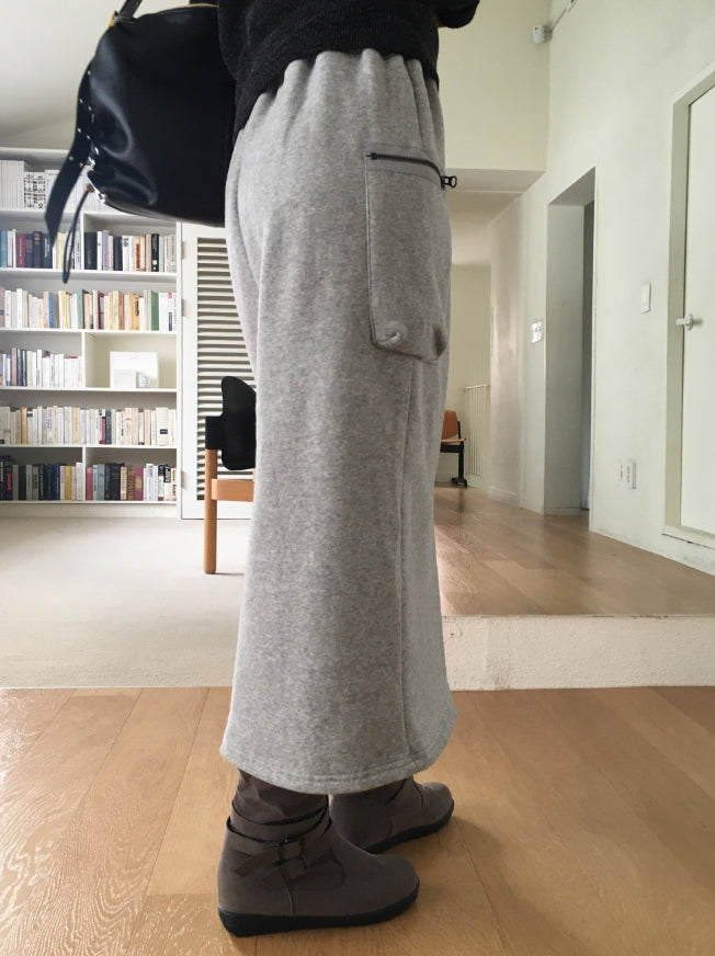 ニックジッパーバンポケットパイル裏起毛ロングスカート