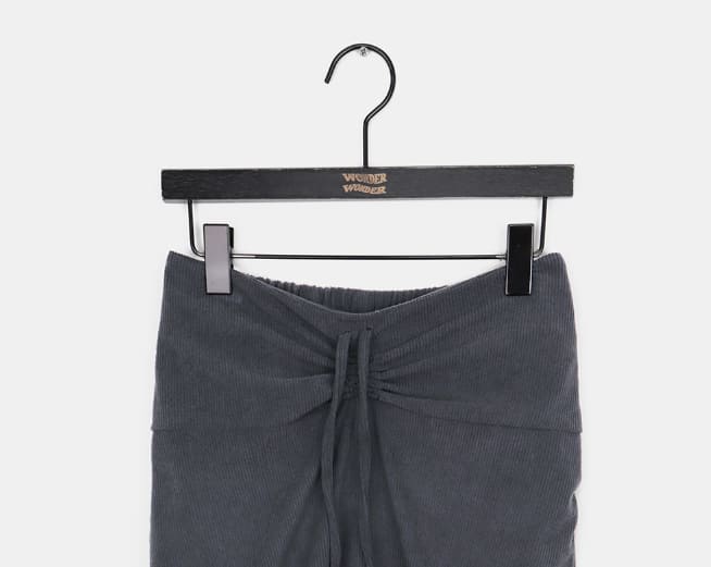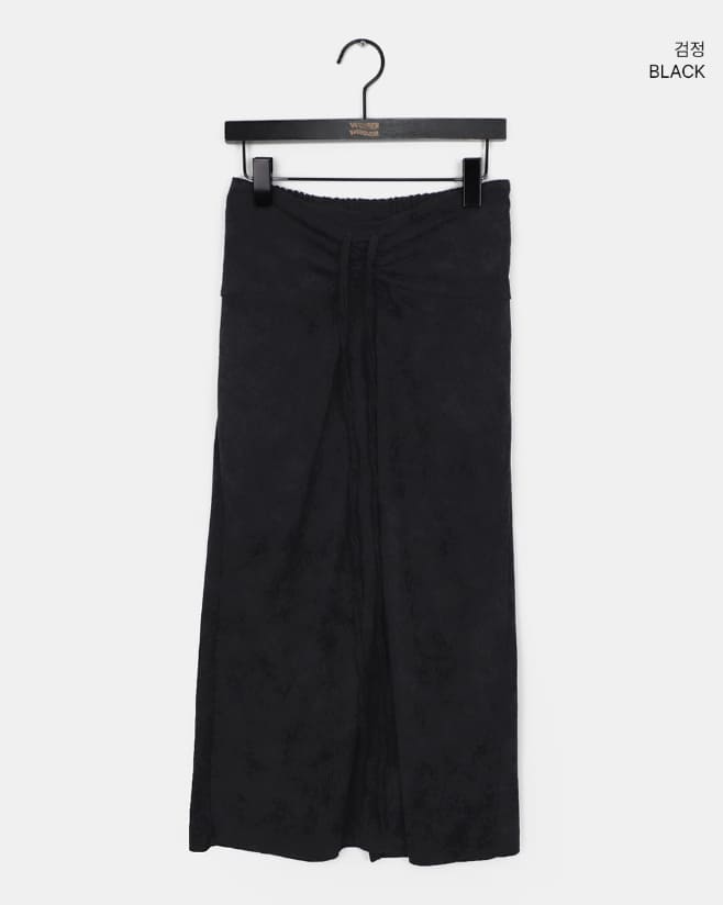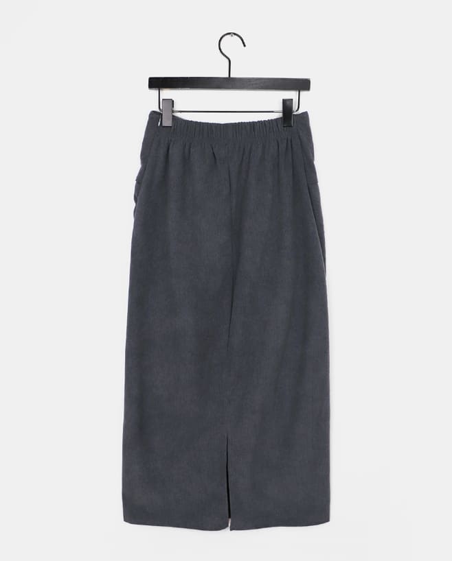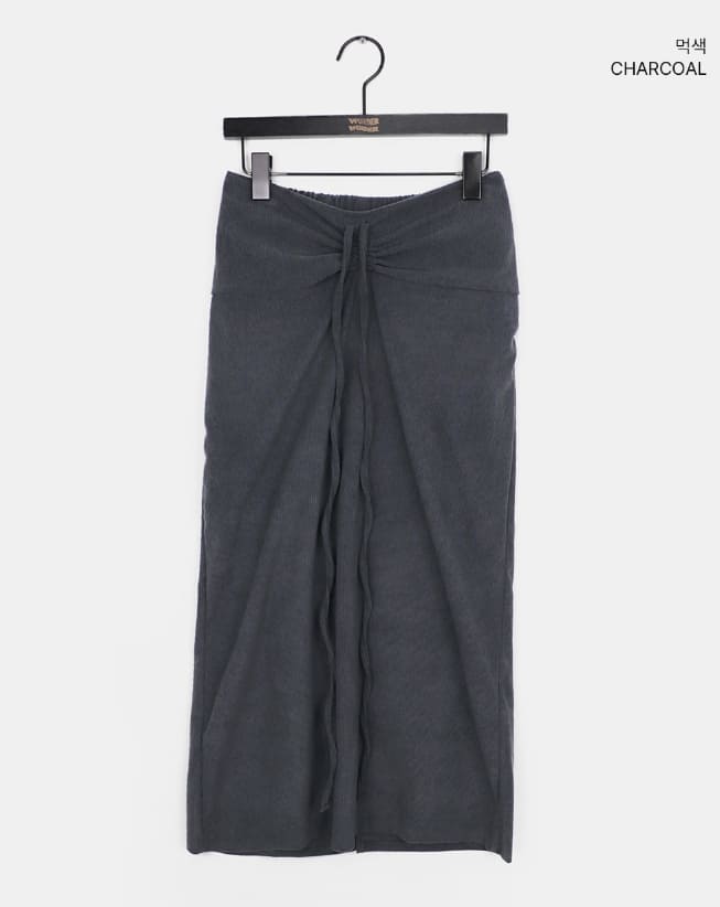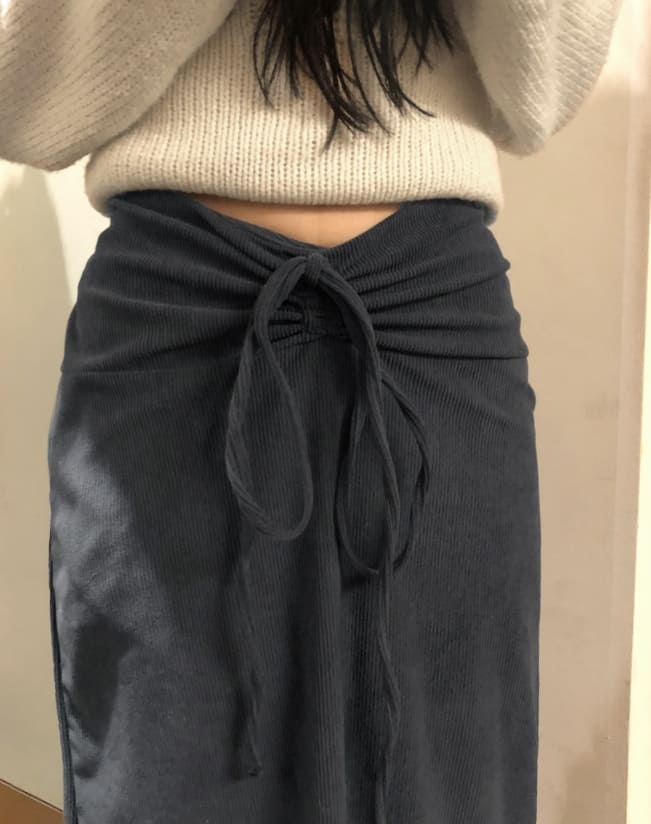 Niru shirring string long slim corduroy skirt