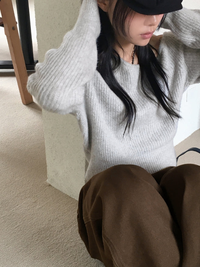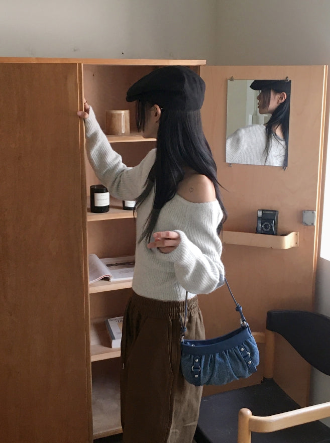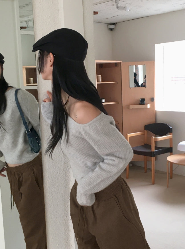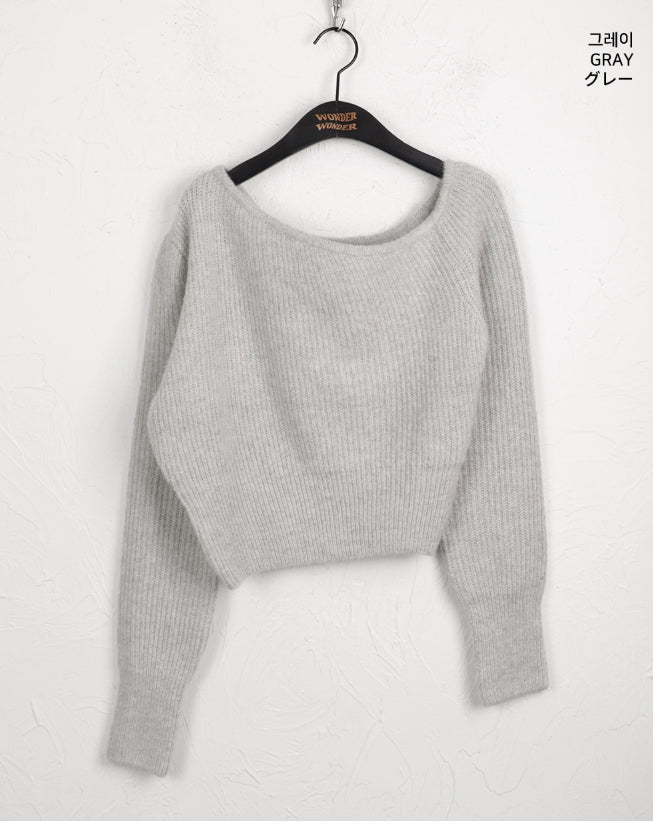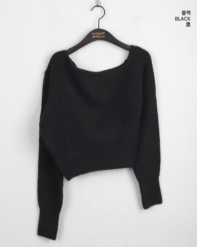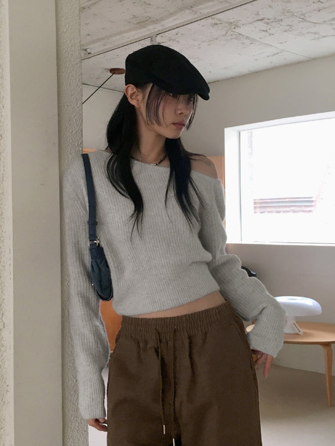 Nize Wool One Off Shoulder Cropped Long Sleeve Knit