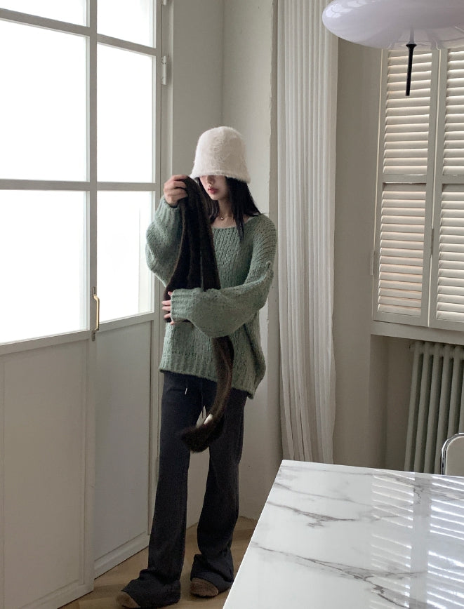 Noah Alpaca Wool Boat Neck Loose Fit Knit