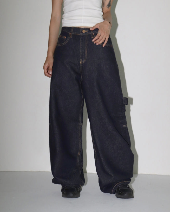 [Non-fade] Opt Union Jack Carpenter Wide Raw Denim Pants