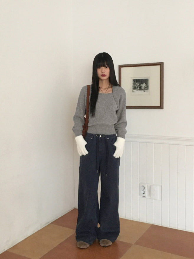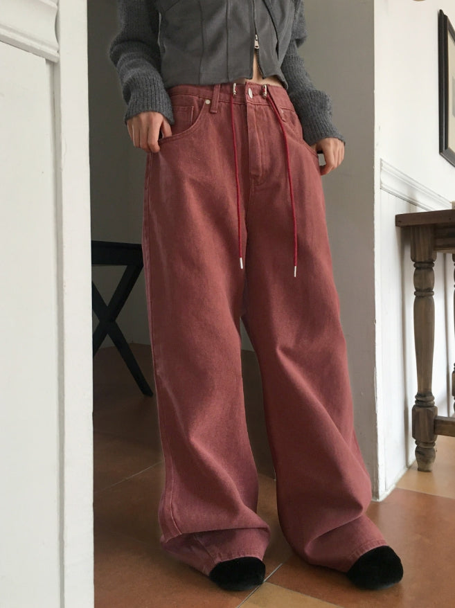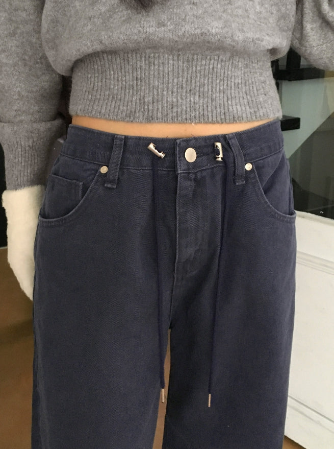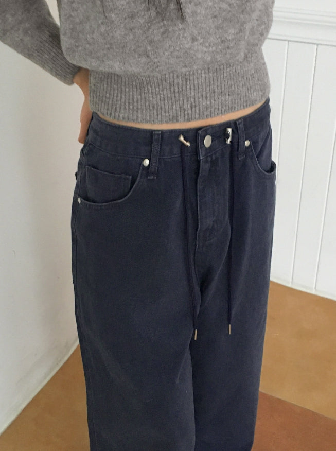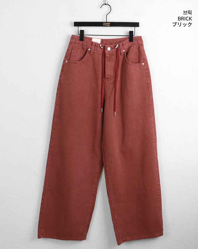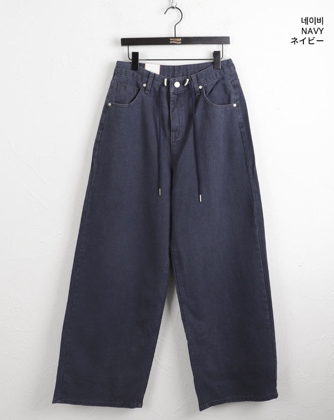 ヌーカンストッパーストリングカラーコットンロングワイドパンツ