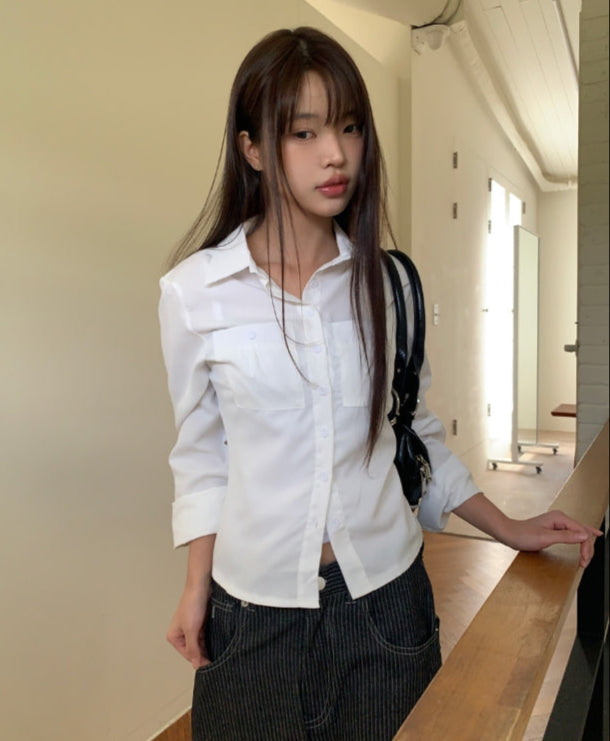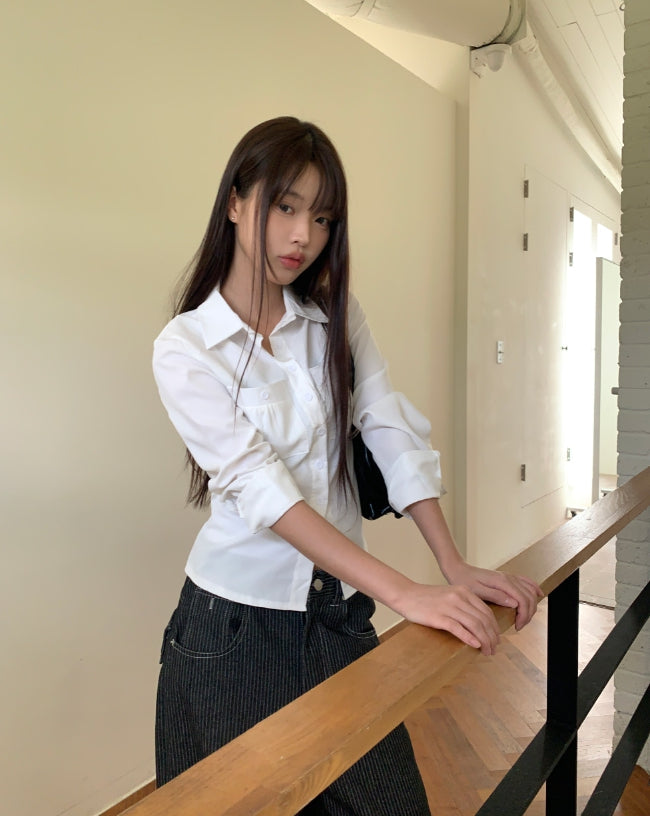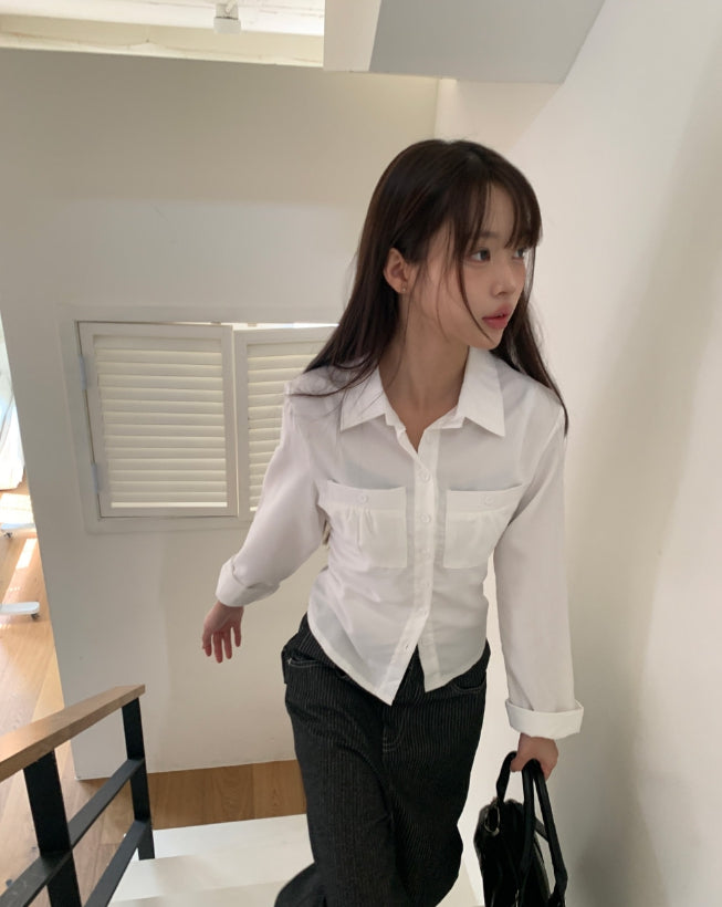 Nua Two-Pocket V-Neck Slim-Fit Long-Sleeve Shirt