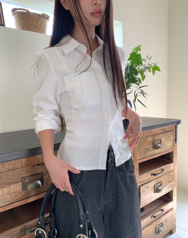 ヌアツーポケットVネックスリムフィット長袖シャツ