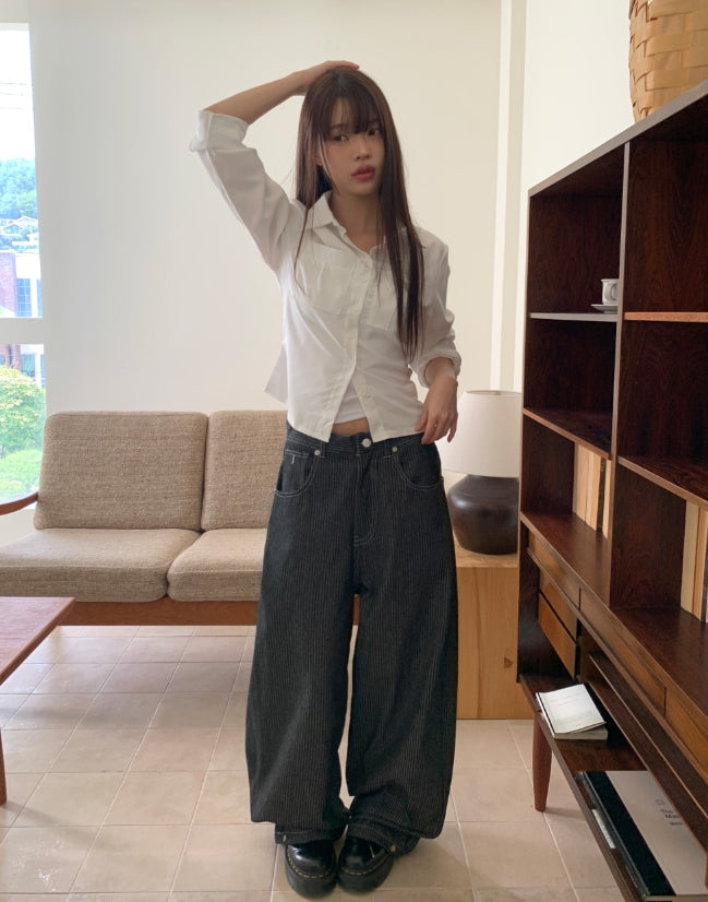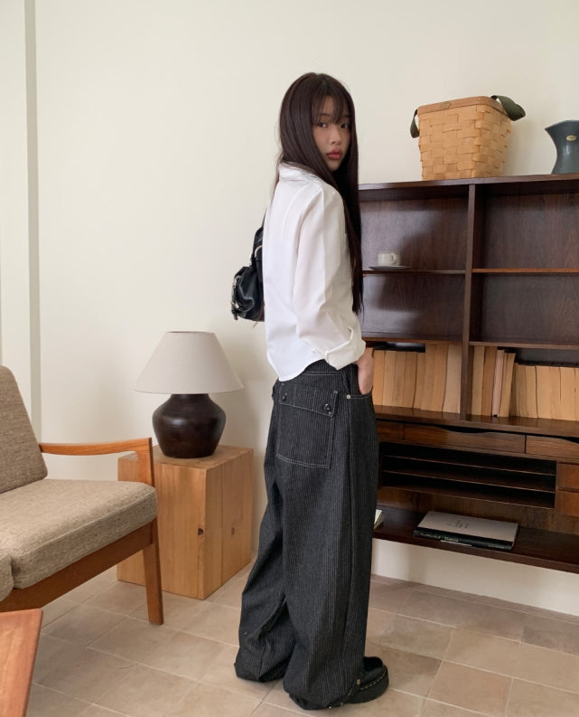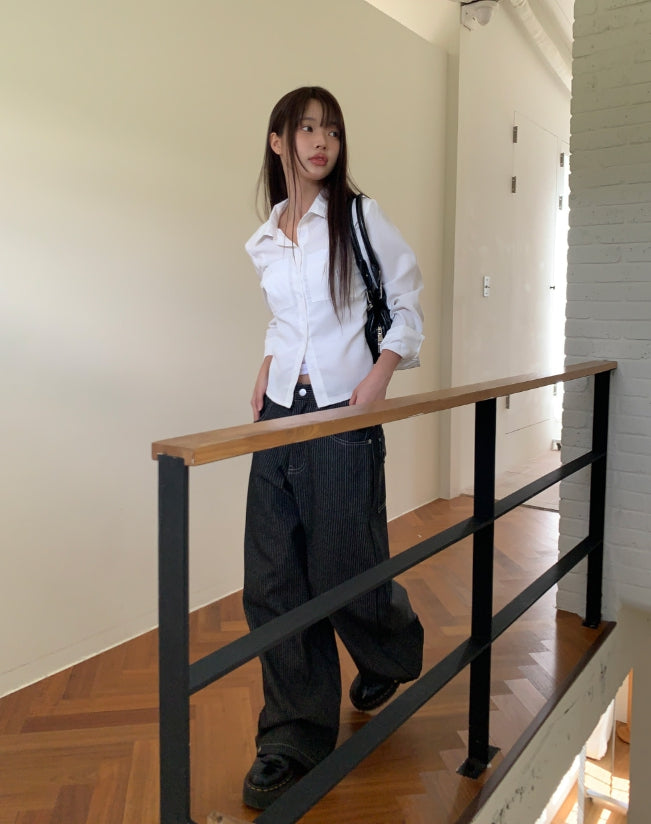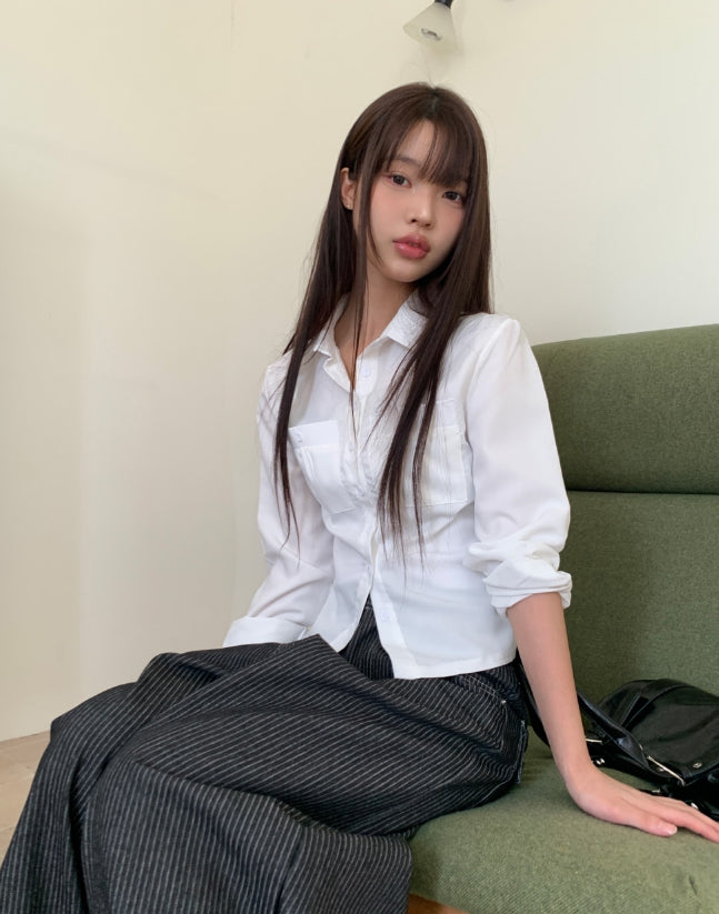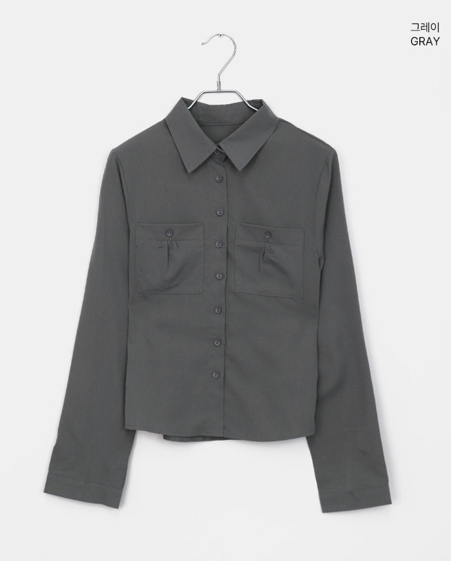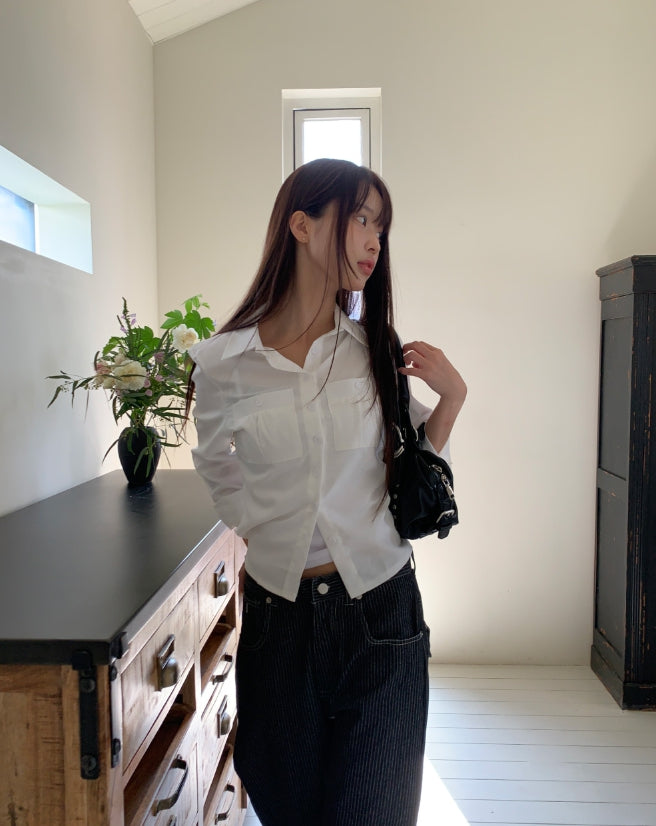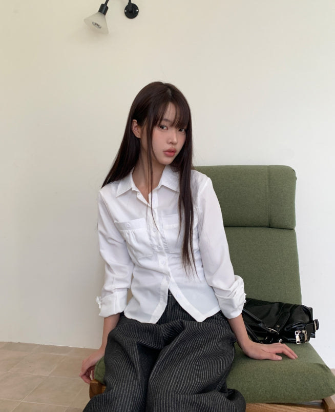 ゆっくりツーポケットVネックスリムフィット長袖シャツ